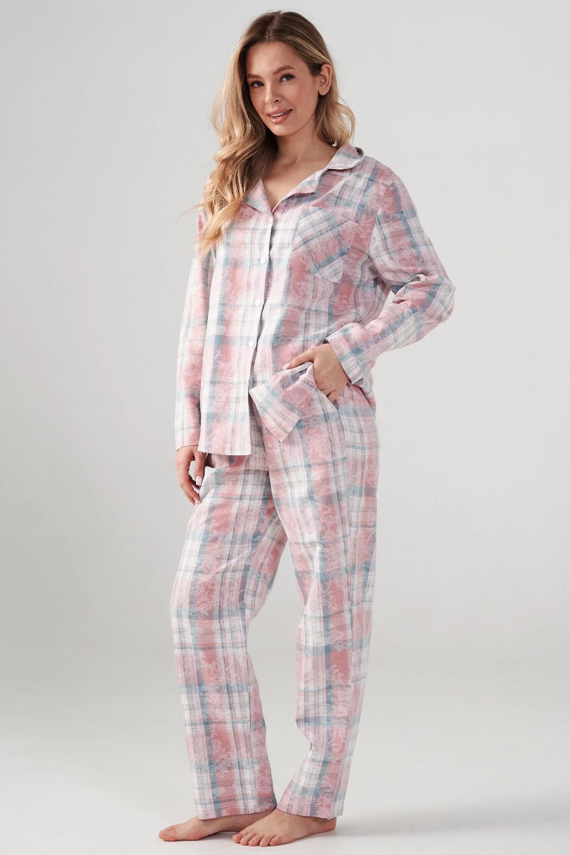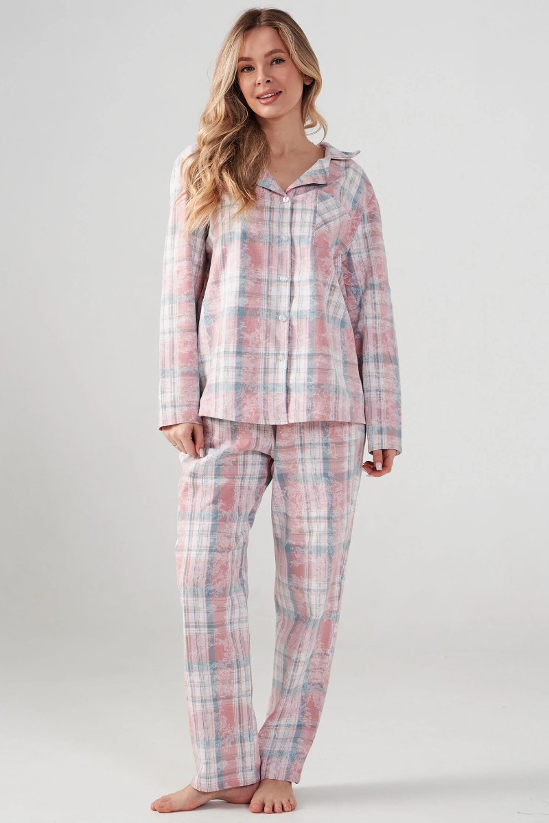 Пижама женская "Добрый вечер" 2163-Ф фланель (р-ры: 42-52) розово-голубой