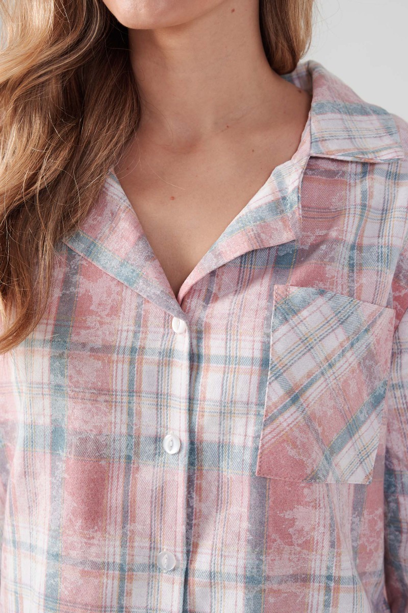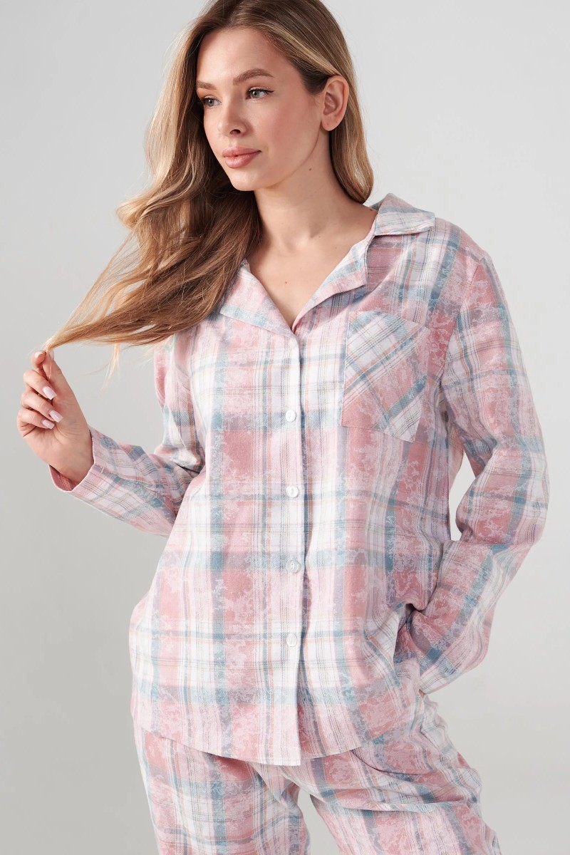 Представляем Вашему вниманию уютную женскую пижаму из мягкой, приятной телу фланели. Комплект имеет интересную расцветку, которая красиво смотрится и поднимает настроение. Пижама хорошо сидит на фигуре и подчеркивает её достоинства. Сон в ней будет максимально комфортным и расслабляющим.