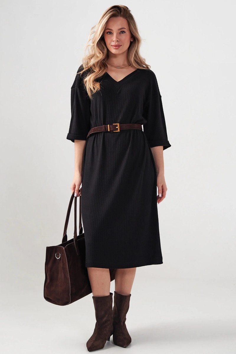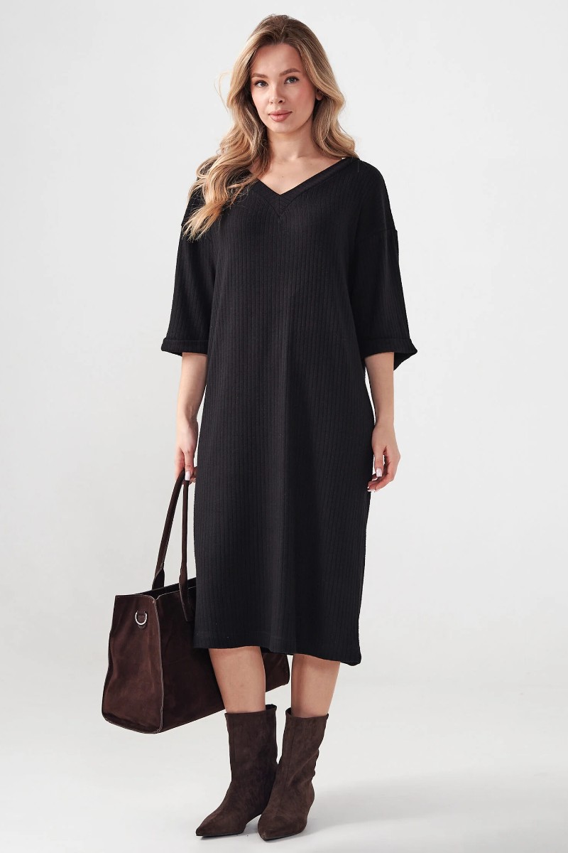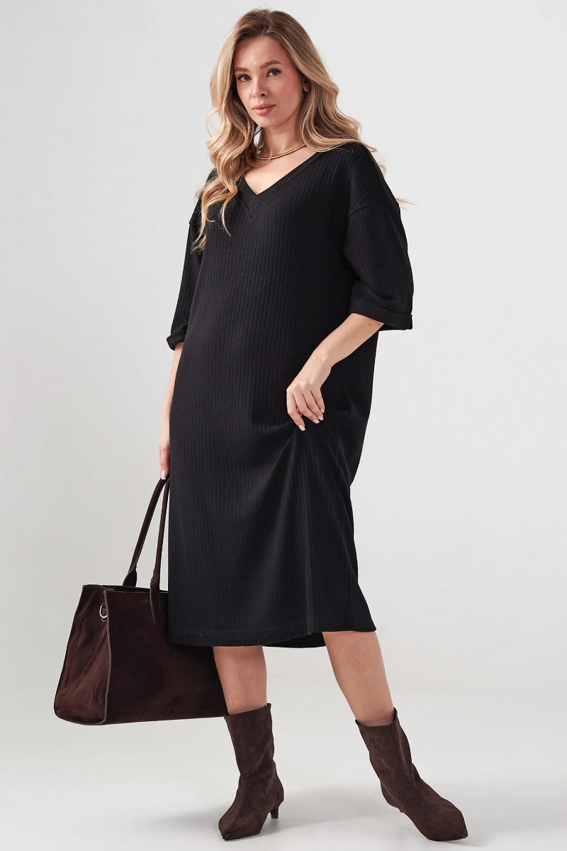 Платье женское "Ангора" 2418-Л лапша (р-ры: 50-56) черный