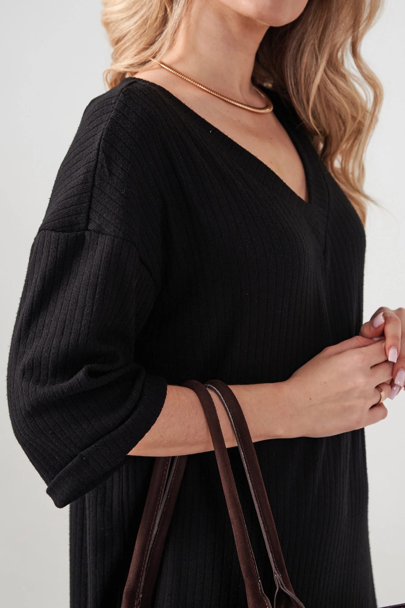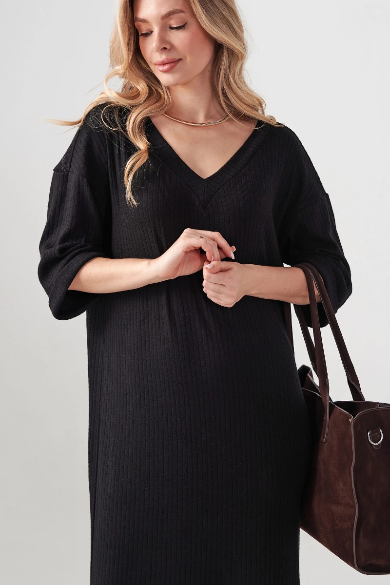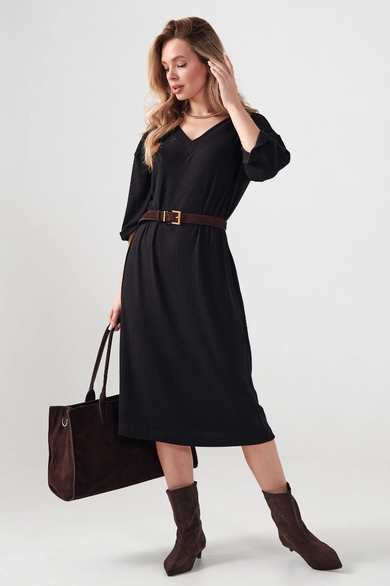 Представляем Вашему вниманию элегантное женское платье длины миди, сшитое из высококачественной лапши. Однотонная модель с V-образным вырезом и рукавом до локтя обеспечит максимум комфорта и полную свободу движений в повседневной носке.