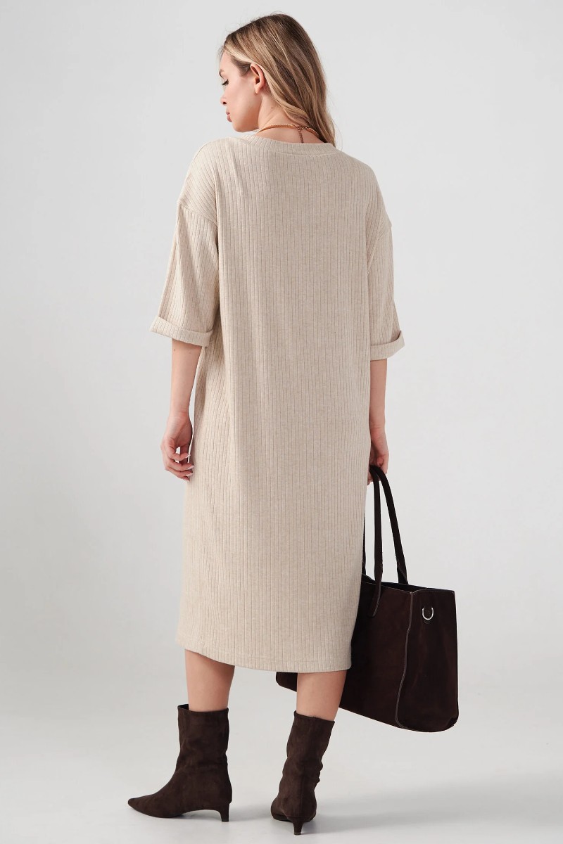 Представляем Вашему вниманию элегантное женское платье длины миди, сшитое из высококачественной лапши. Однотонная модель с V-образным вырезом и рукавом до локтя обеспечит максимум комфорта и полную свободу движений в повседневной носке.