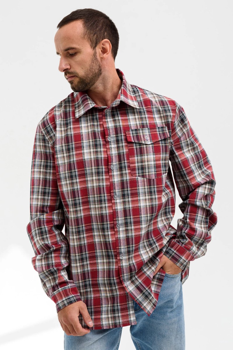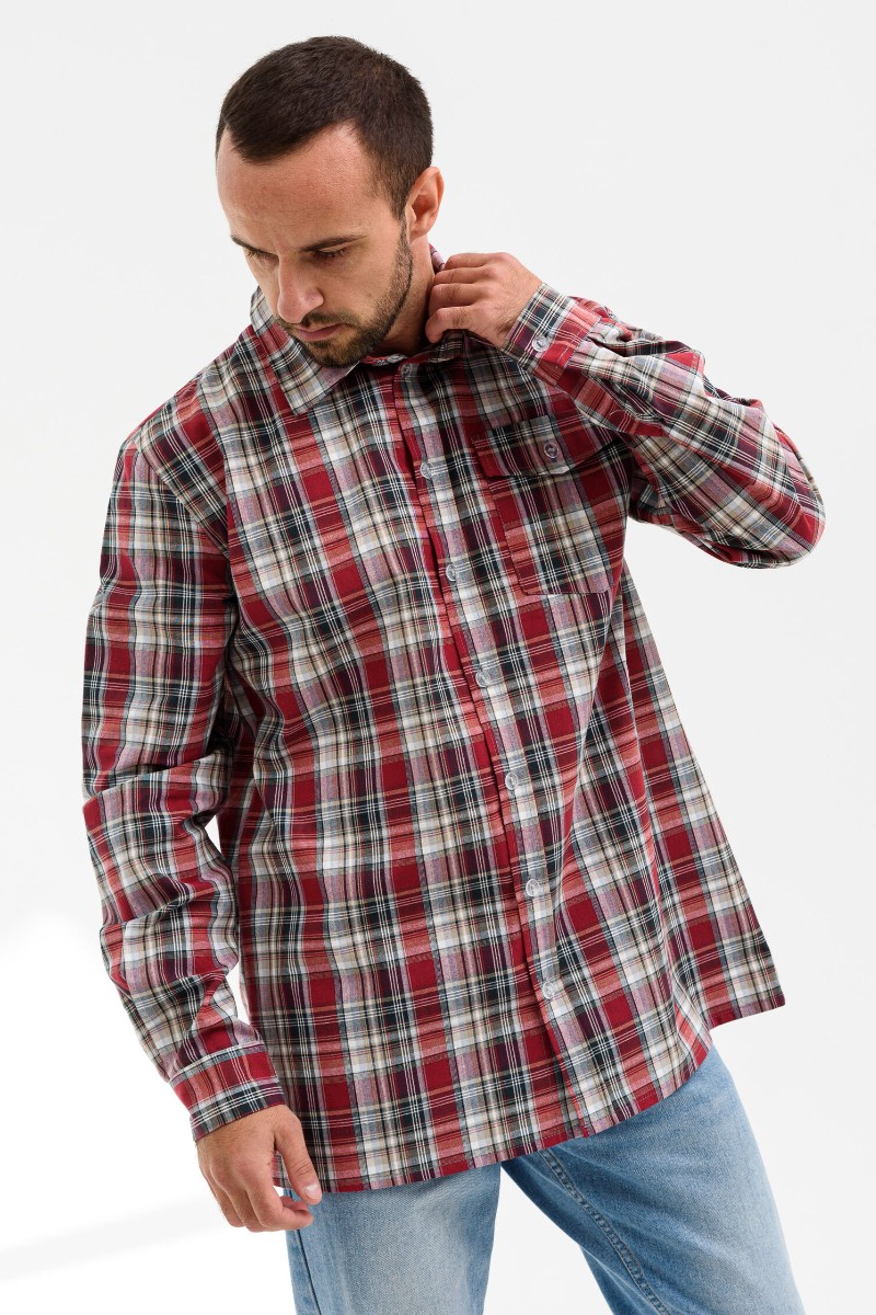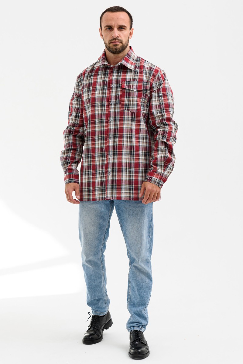 Сорочка мужская 459-Шот "Шотландка" шотландка (р-ры: 48-60) бургунди