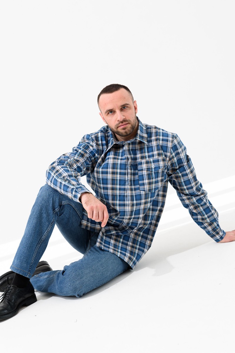 Сорочка мужская 459-Шот "Шотландка" шотландка (р-ры: 48-60) синий