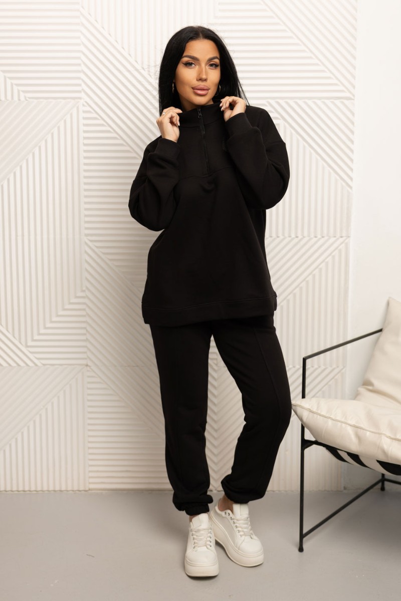 Костюм двойка женский 2037 футер 3-х нитка петля (р-ры: 44-58) черный