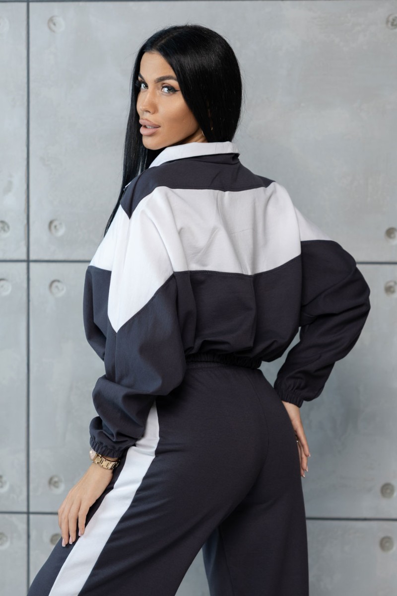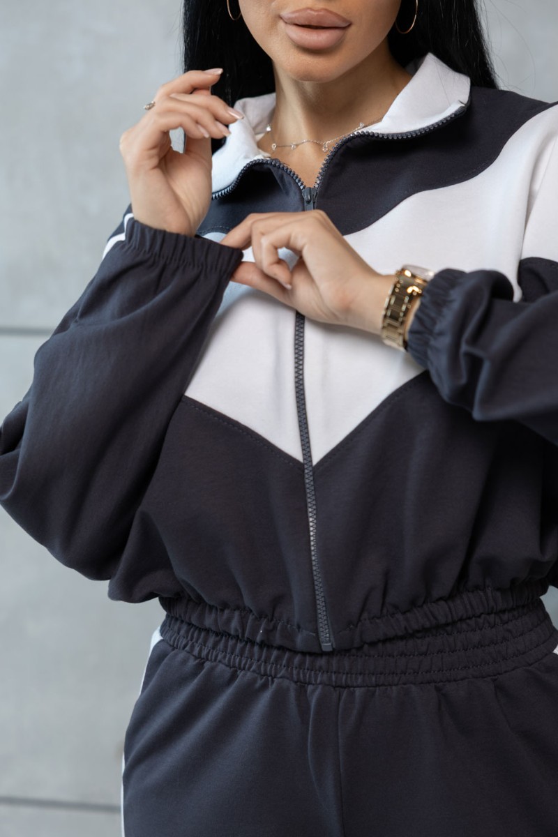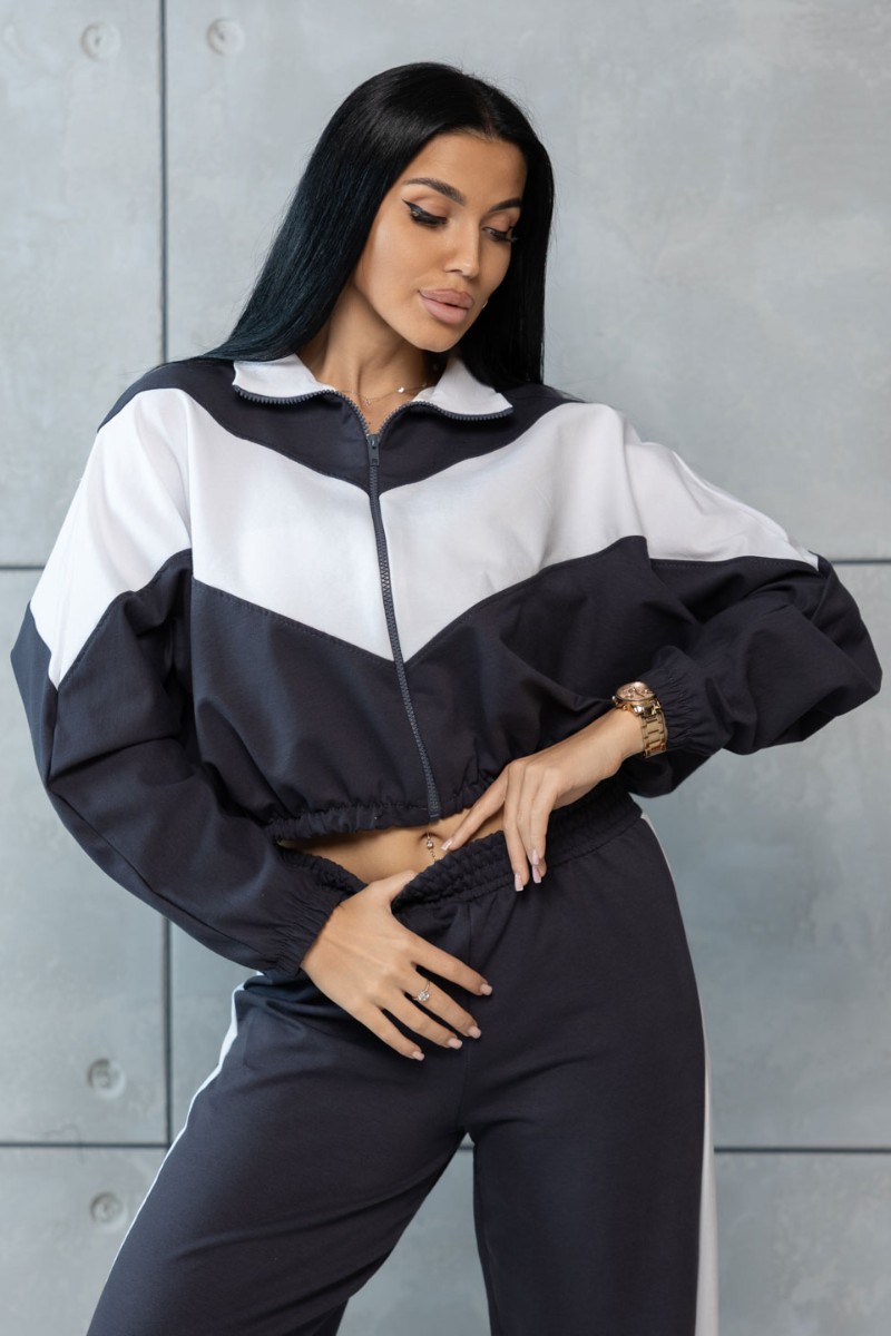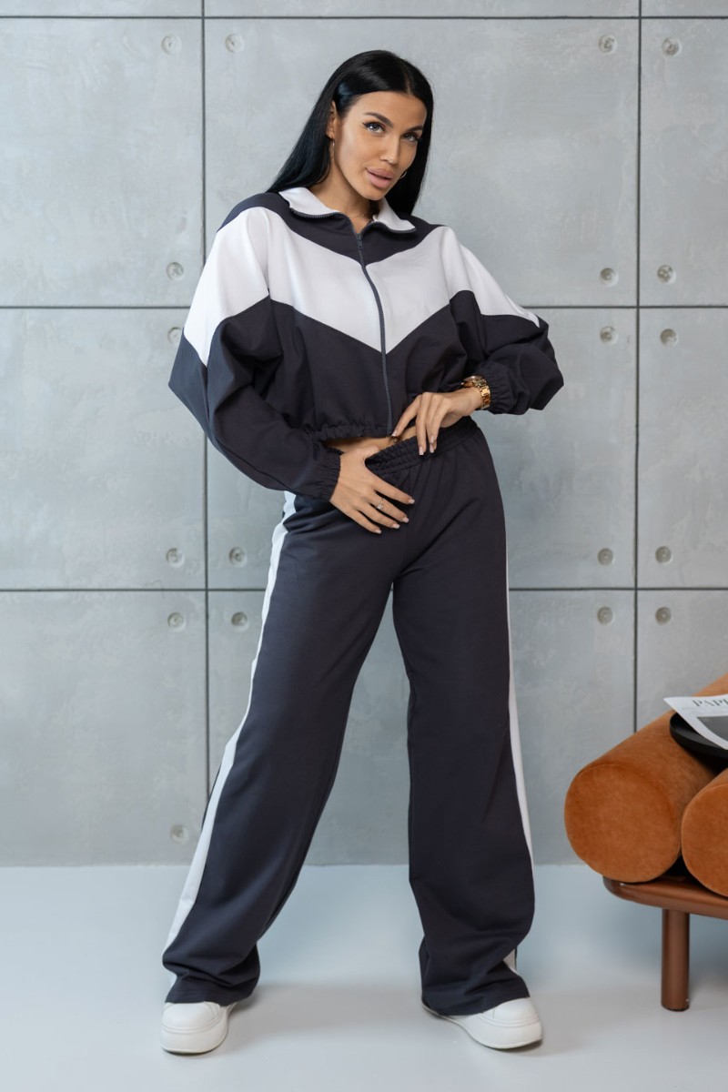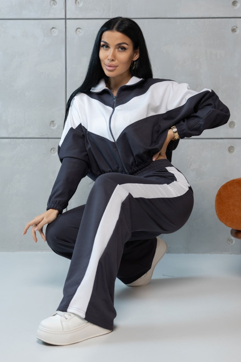 Костюм двойка женский 1902/3 футер (р-ры: 44-54) серый-белый