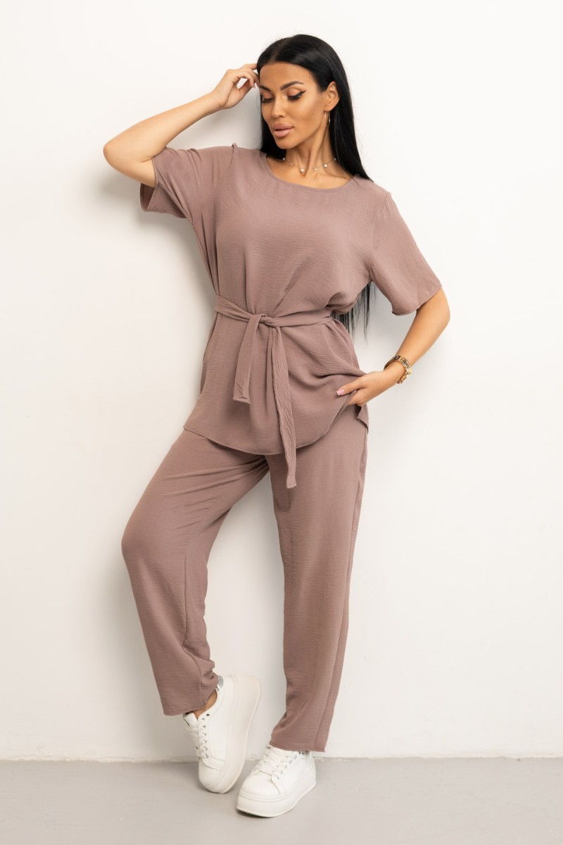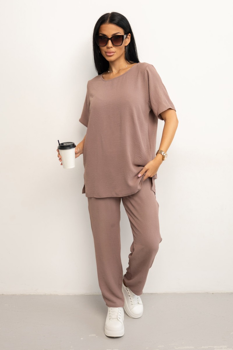 Костюм двойка женский 1844/3 жатка кантри (р-ры: 46-56) какао