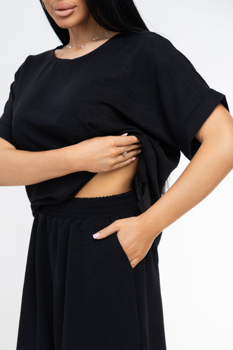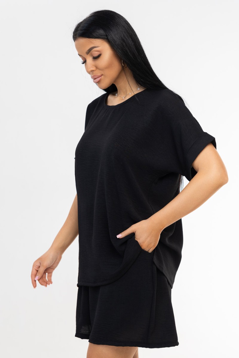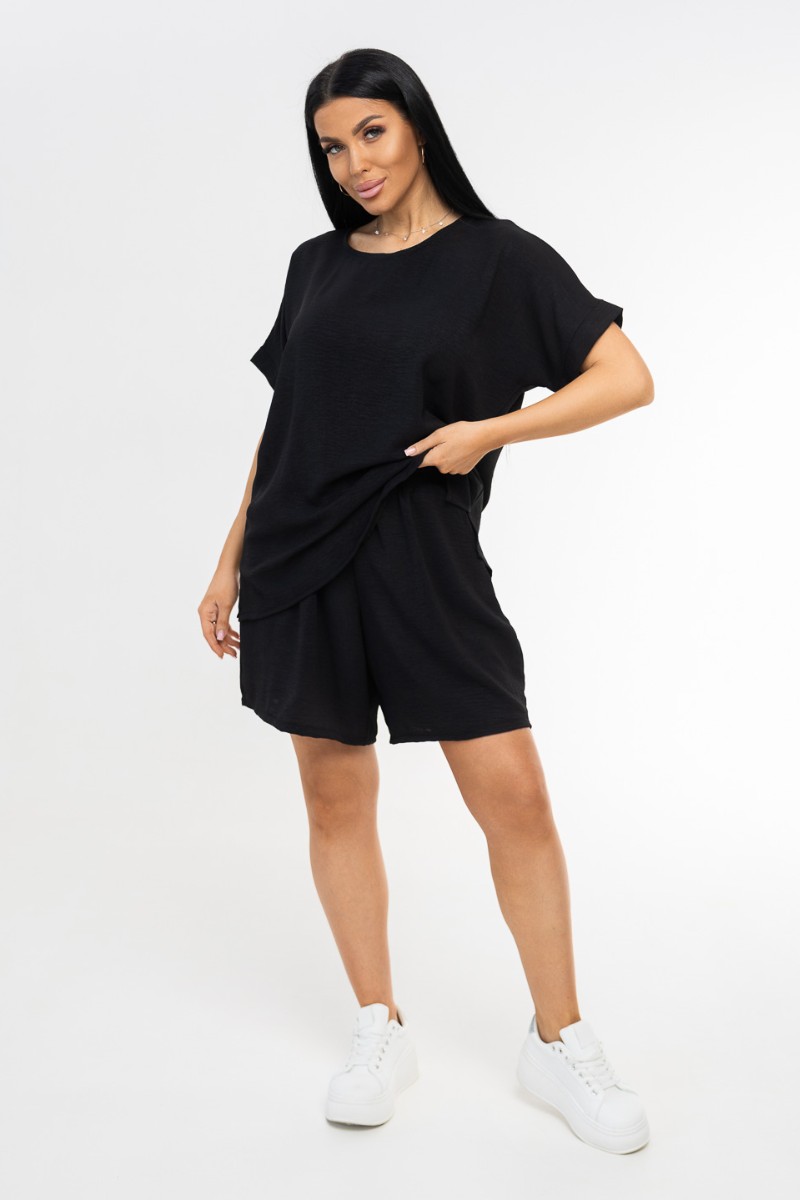 Костюм двойка женский 1916/4 жатка кантри (р-ры: 48-62) черный