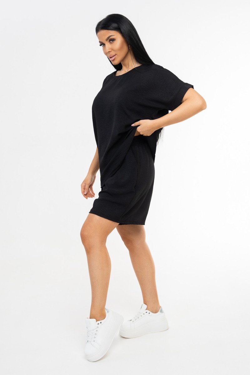 Представляем Вашему вниманию ультрамодный костюм из жатки, очень легкий, гигроскопичный материал, обеспечивающий прохладу и комфорт в жаркую погоду. Свободная футболка с цельнокроеным рукавом, манжетой по низу рукава и О-образной горловиной. Шорты свободного кроя с карманами, будут отлично смотреться как с кроссовками, так и с летними босоножками.