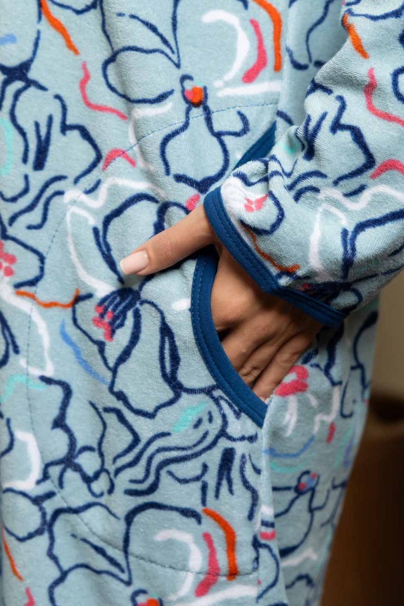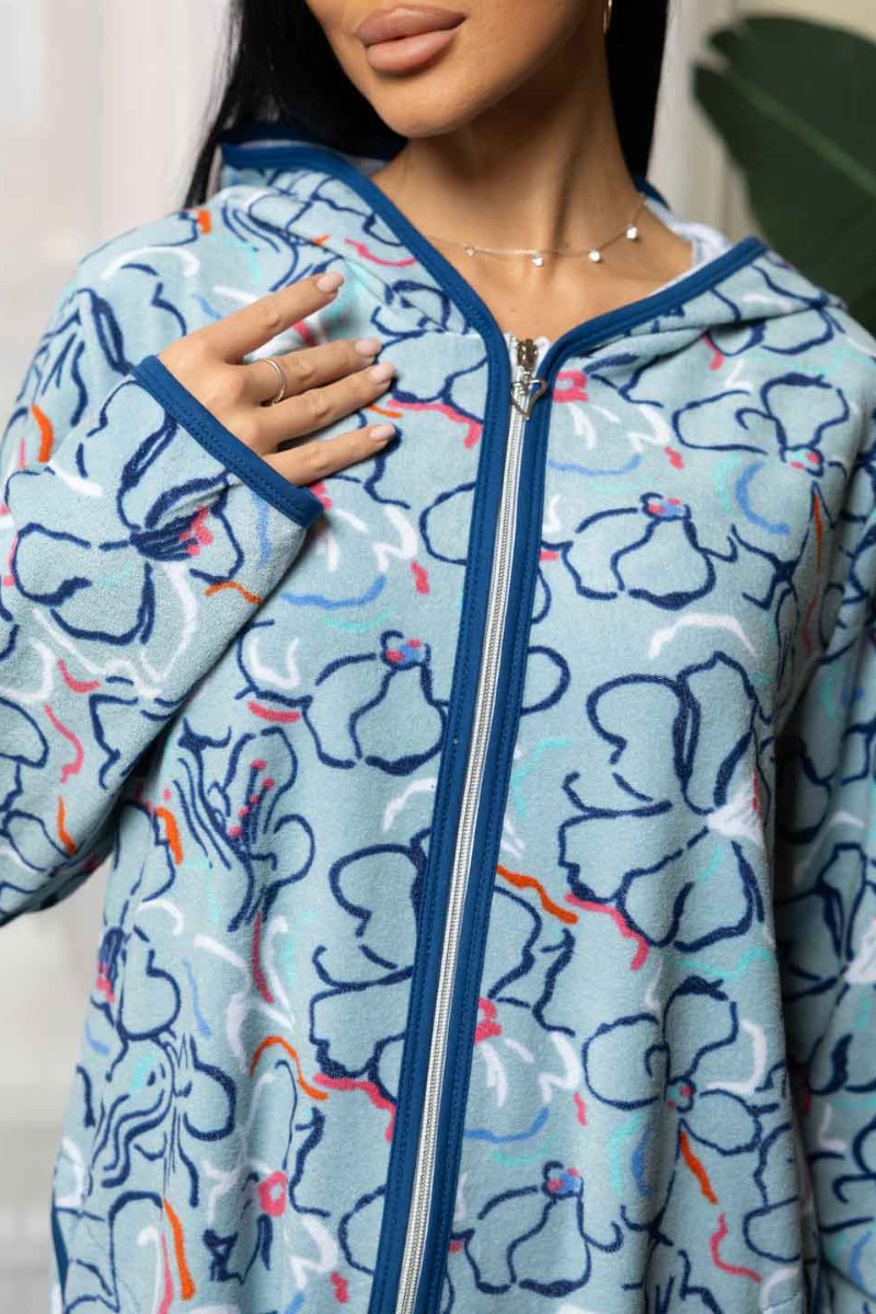 Представляем Вашему вниманию женский махровый халат с капюшоном и надежной застежкой на молнию. Длина изделия, чуть ниже уровня колена. Удобные карманы с отрезным бочком. Наиболее уязвимые при носке места изделия: низ халата, рукава и карманы окантованы, что значительно увеличивает срок службы халата.