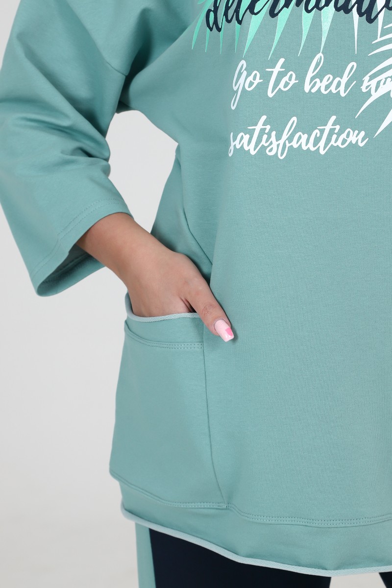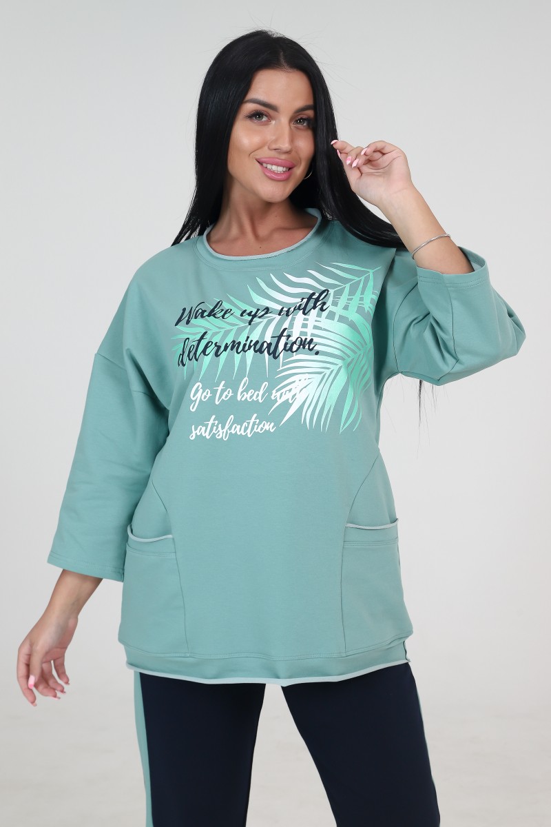 Представляем Вашему вниманию легкую женскую тунику, сшитую из приятного телу, воздухопроницаемого футера. Модель имеет интересную расцветку, которая красиво смотрится и поднимает настроение. Изделие хорошо сидит на фигуре и подчеркивает её достоинства. В ней Вы будете чувствовать себя комфортно и уверенно.