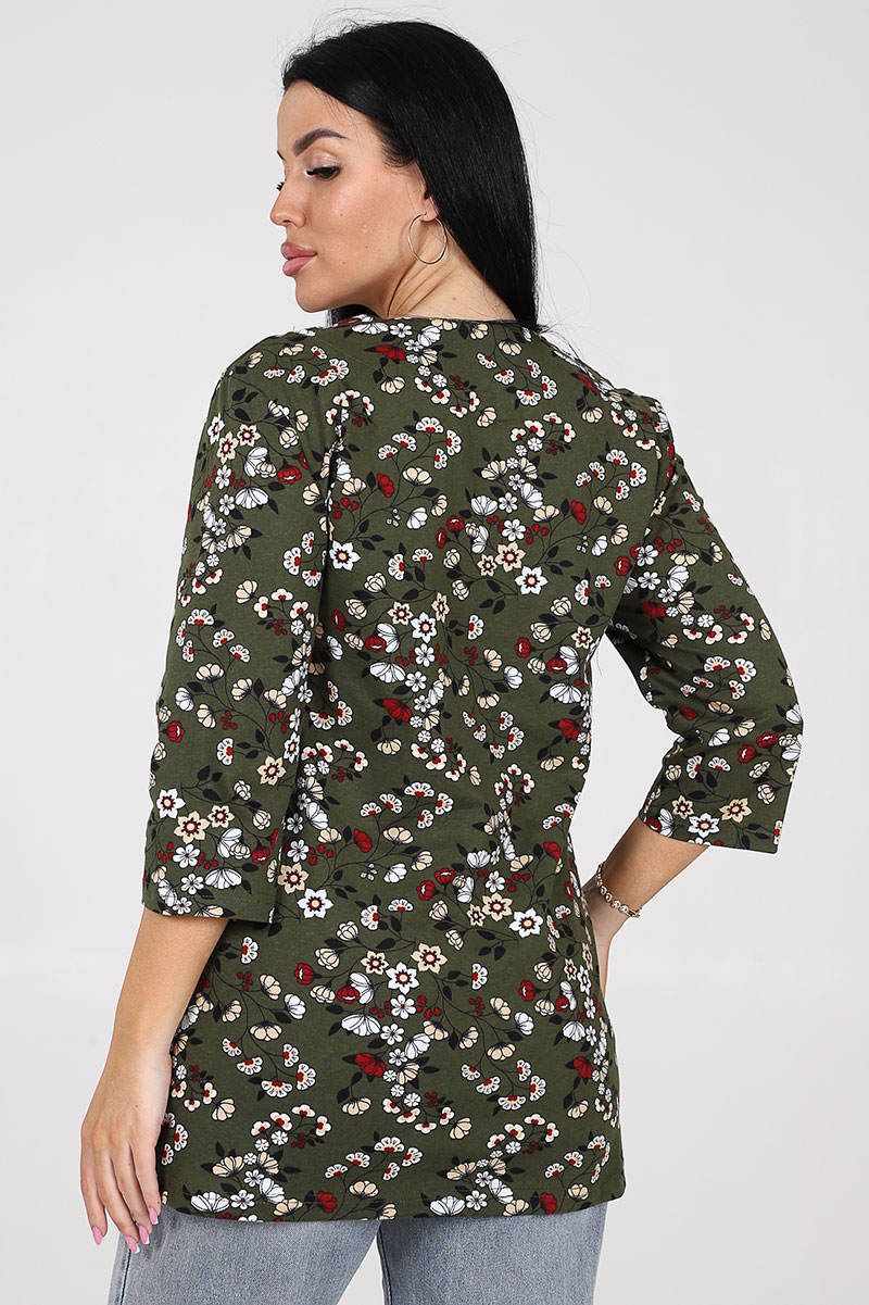 Туника-кофта женская ТК-2035 кулирка (последний размер) веточки на хаки 56