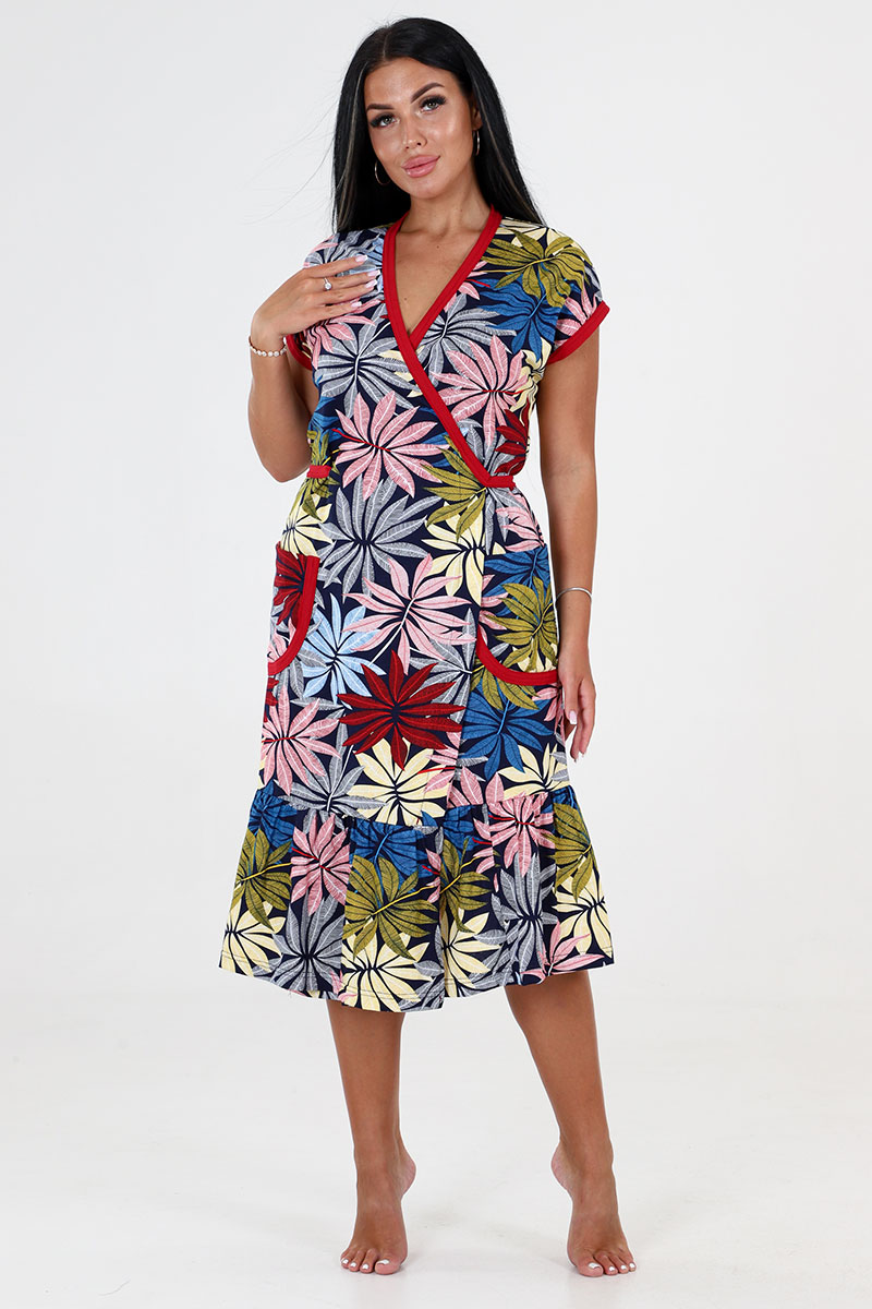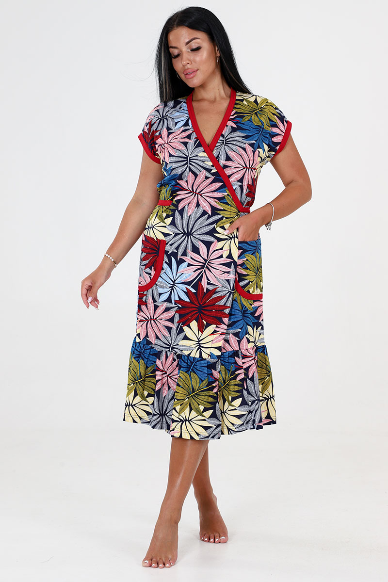 Халат женский "Кимоно Макси" ХК-42 кулирка (последний размер) разноцветный папоротник 62
