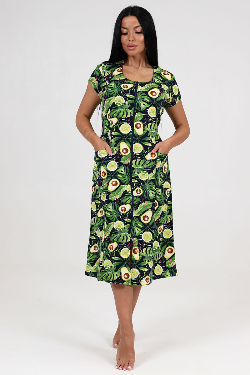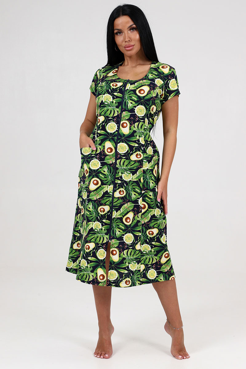 Халат женский ХК-548 кулирка (последний размер) авокадо с лимоном 54