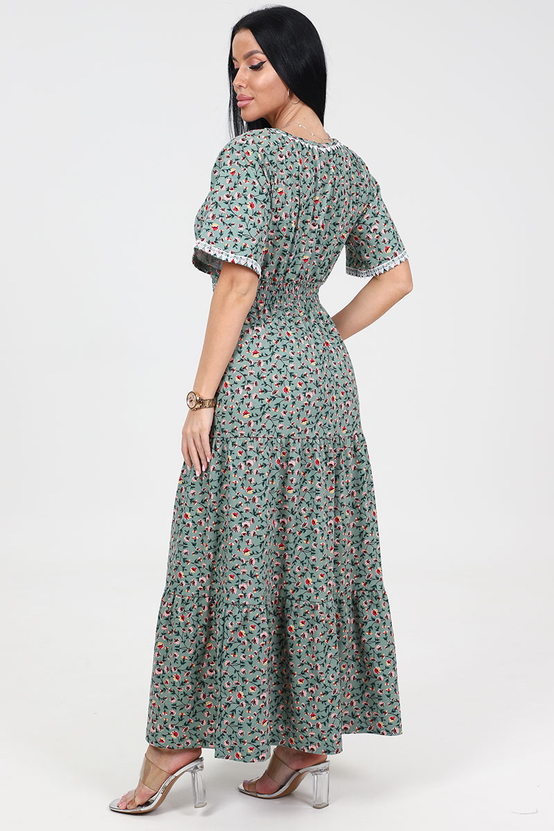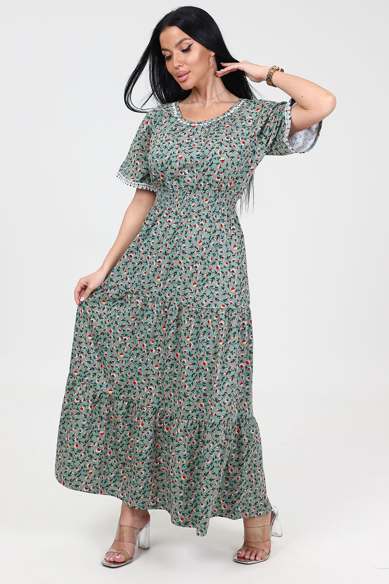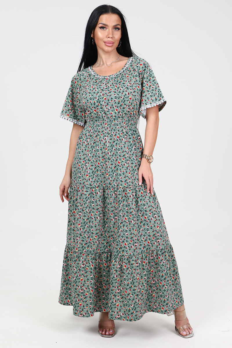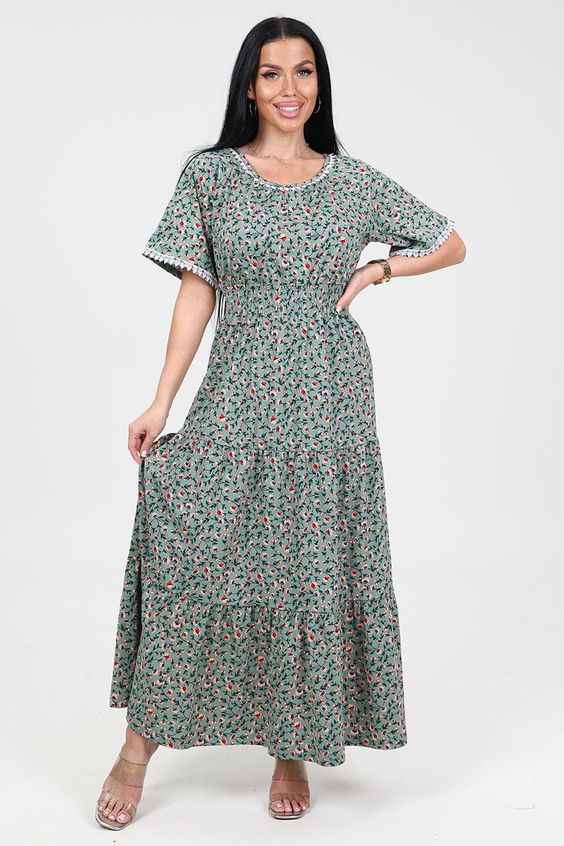 Платье женское "Белла" ПлК-402 кулирка (последний размер) огоньки на оливке 48