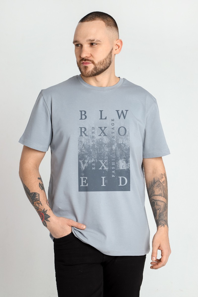 Представляем Вашему вниманию мужскую футболку из гладкокрашеного трикотажного полотна "кулирка" с лайкрой, классического покроя, с коротким втачными рукавами, горловиной овальной формы, обработанной втачной планкой и принтом на полочке, выполненным в технике шелкографии.