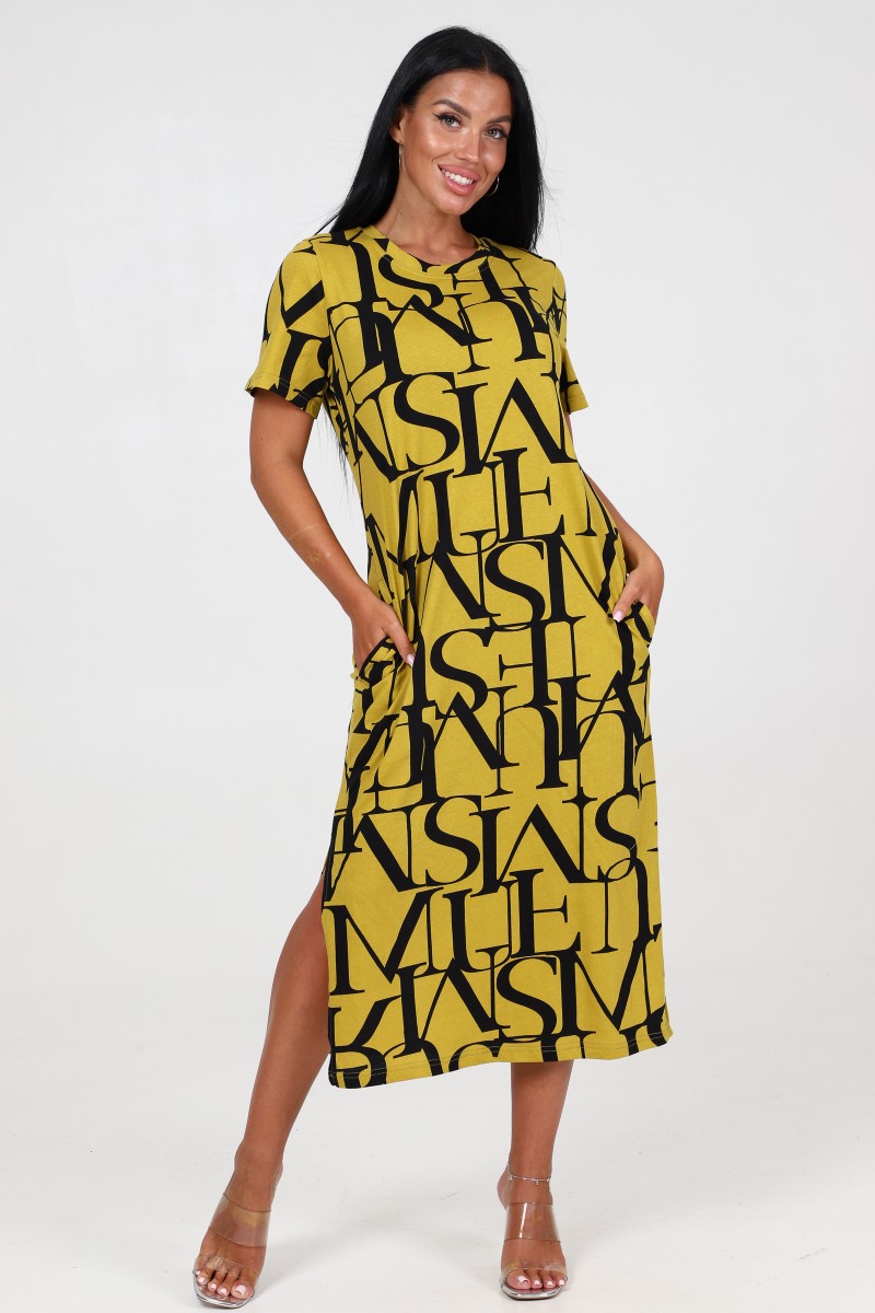 Туника женская ТК-2265 кулирка (последний размер) черн.кр.буквы на горчице 48