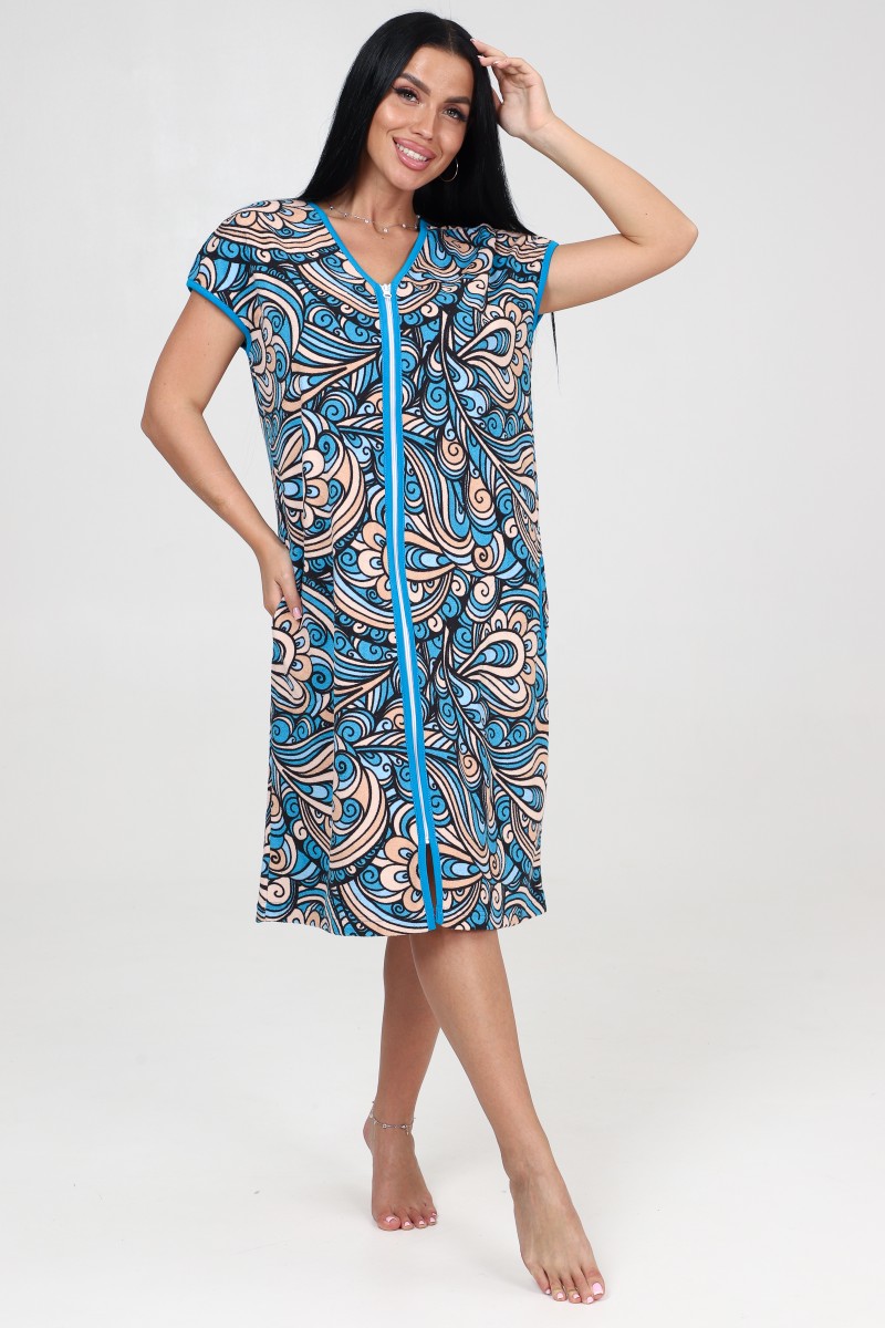 Представляем Вашему вниманию халат женский домашний классического кроя, с двумя боковыми внутренними карманами. Рукава спущенные кимоно. V-образный вырез вытягивает и стройнит. Халат аккуратно окантован вдоль молнии, карманов и рукавов. Материал - махра петельчатая. Халат женский домашний - самый удобный, практичный и уютный вариант для дома. Стильный и легкий халат для дома подойдет любому типу фигуры, для женщин невысокого и среднего роста. Такой халат отлично подойдет для дома и отдыха.