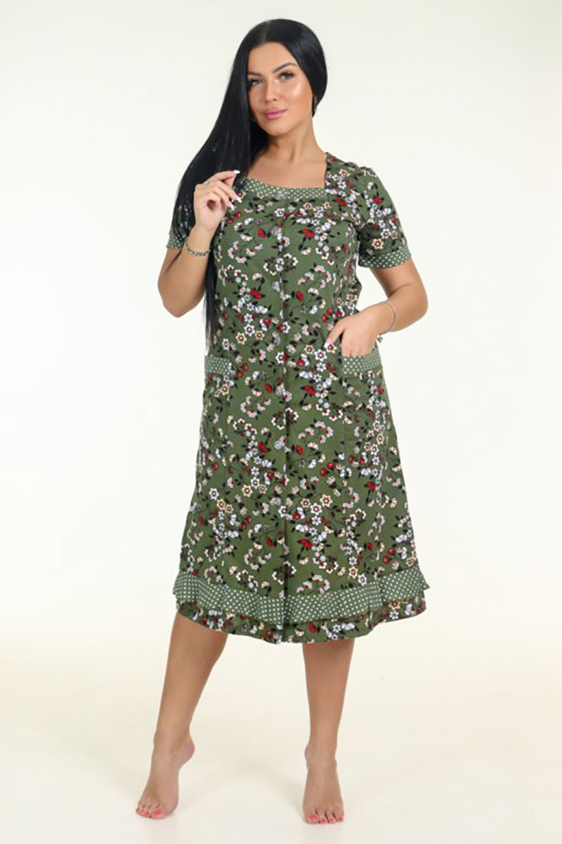 Халат женский "Мимоза" ХК-781 кулирка (последний размер) хаки с веточками 52