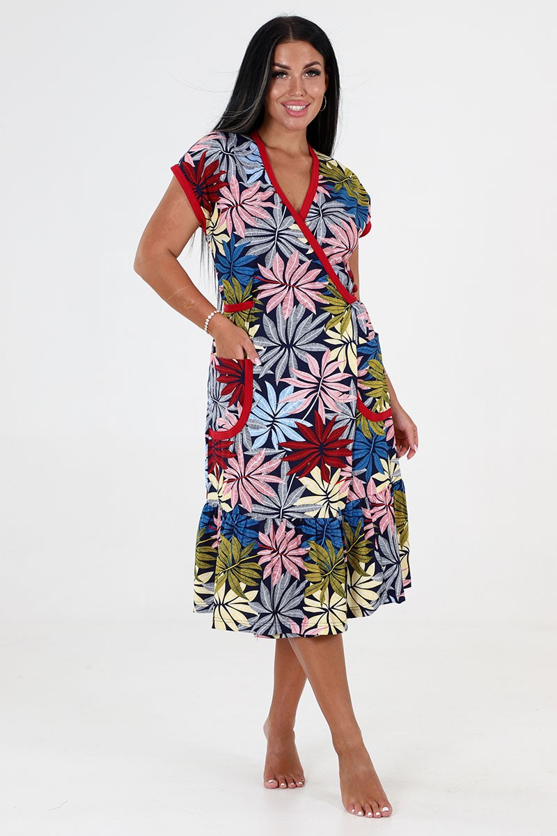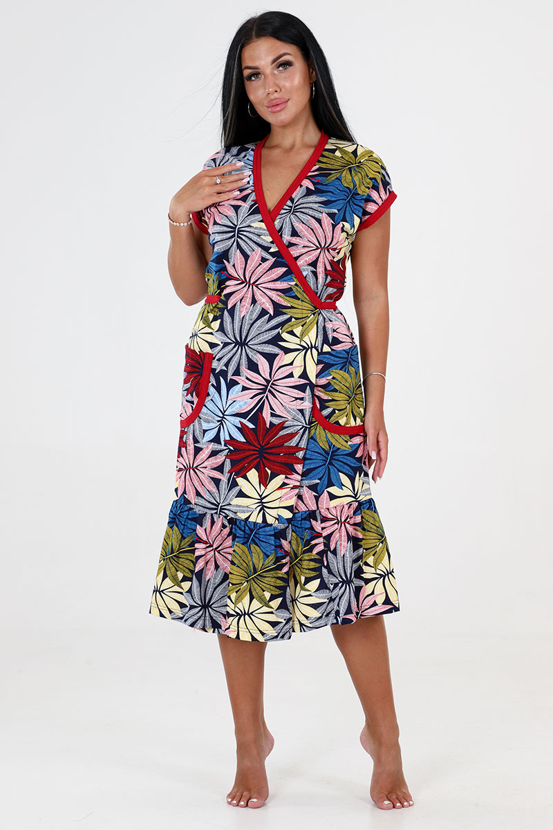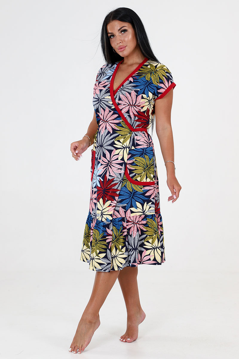 Халат женский "Кимоно" ХК-671 кулирка (последний размер) разноцветный папоротник 56