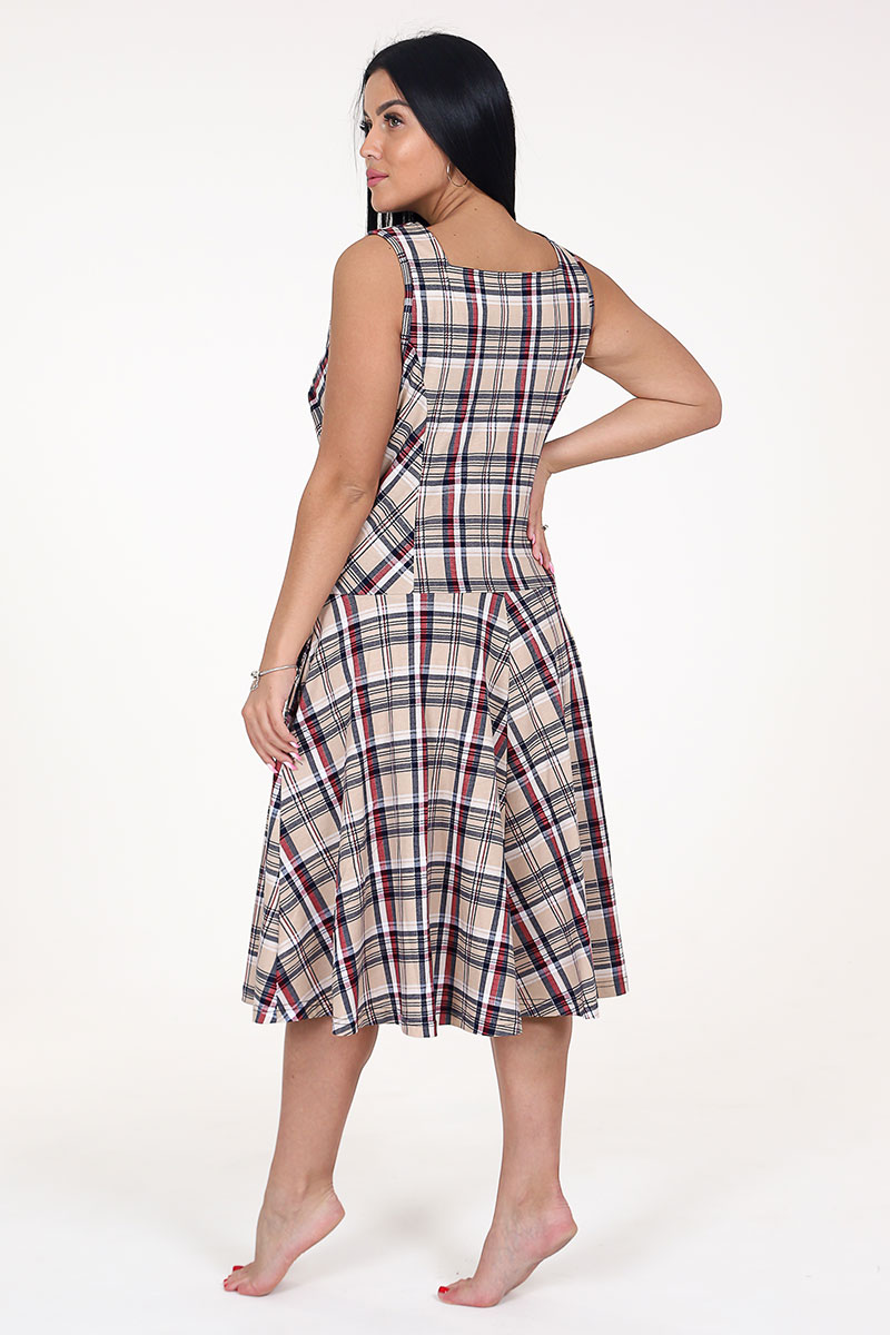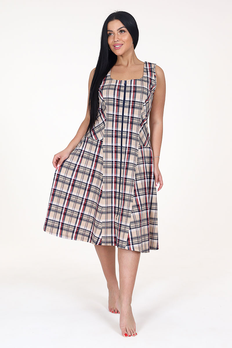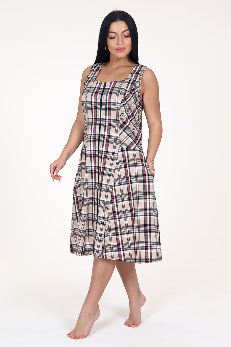 Сарафан женский СК-336 кулирка (последний размер) бежевая клетка 50