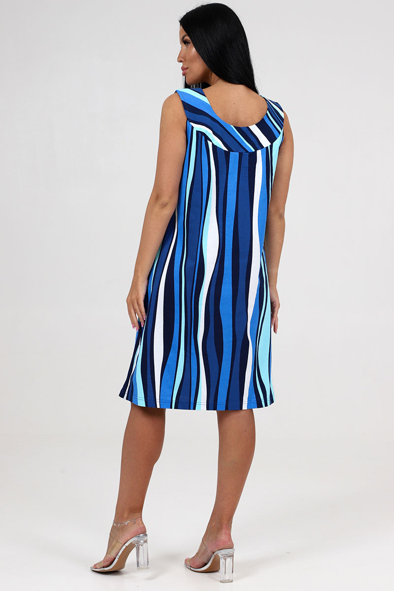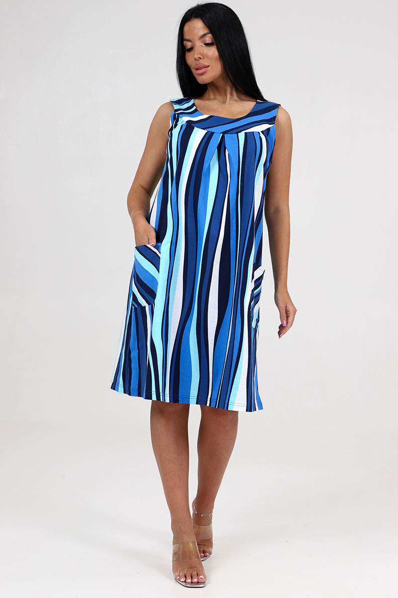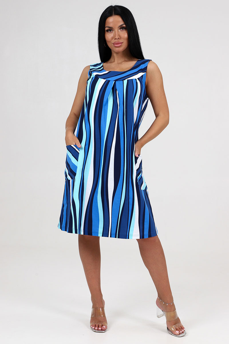 Сарафан женский СК-418 "Вертикаль" кулирка (последний размер) полоса волна голубой 58