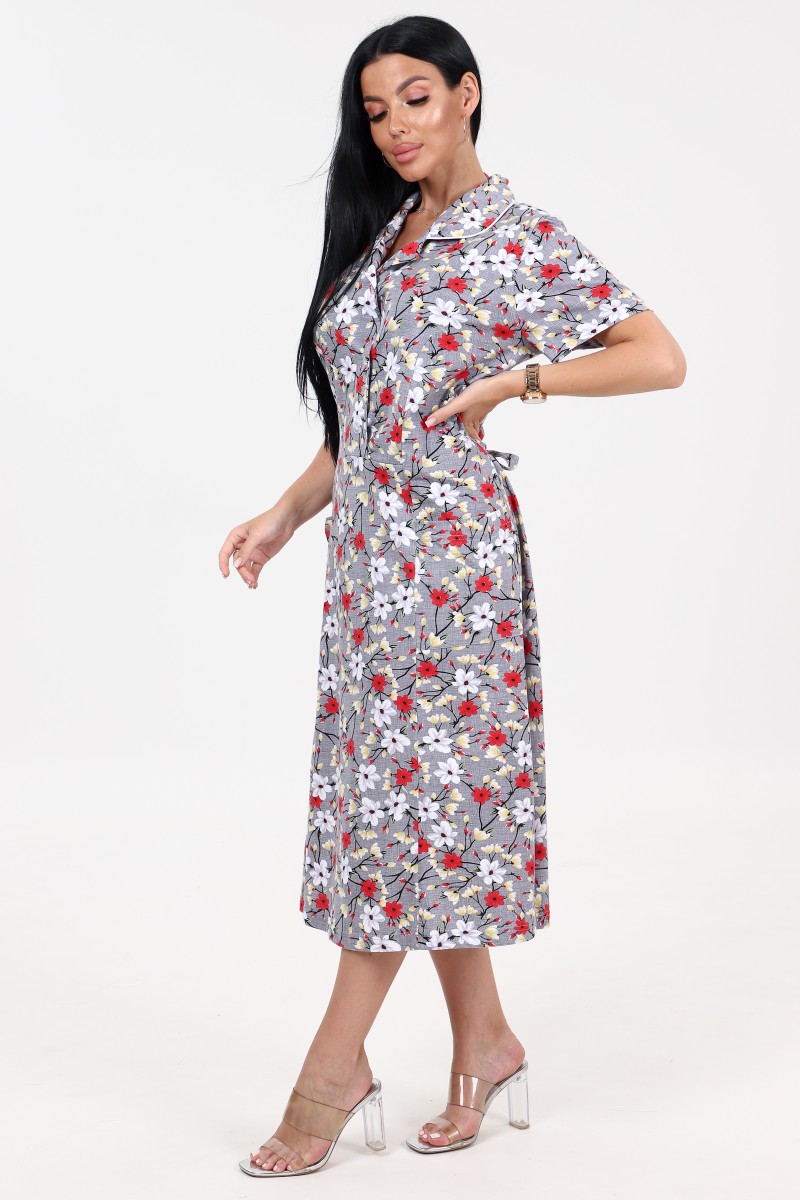 Представляем Вашему вниманию женское трикотажное платье. Воротник с атласным белым кантом, втачной короткий рукав, 2 вместительных кармана. Верх платья на пуговицах, до уровня талии, в боковых швах 2 пояска. Длина ниже колен. Платье сшито из кулирки - трикотажное полотно из натурального хлопка, отличается хорошим воздухообменом благодаря чему тело будет дышать.