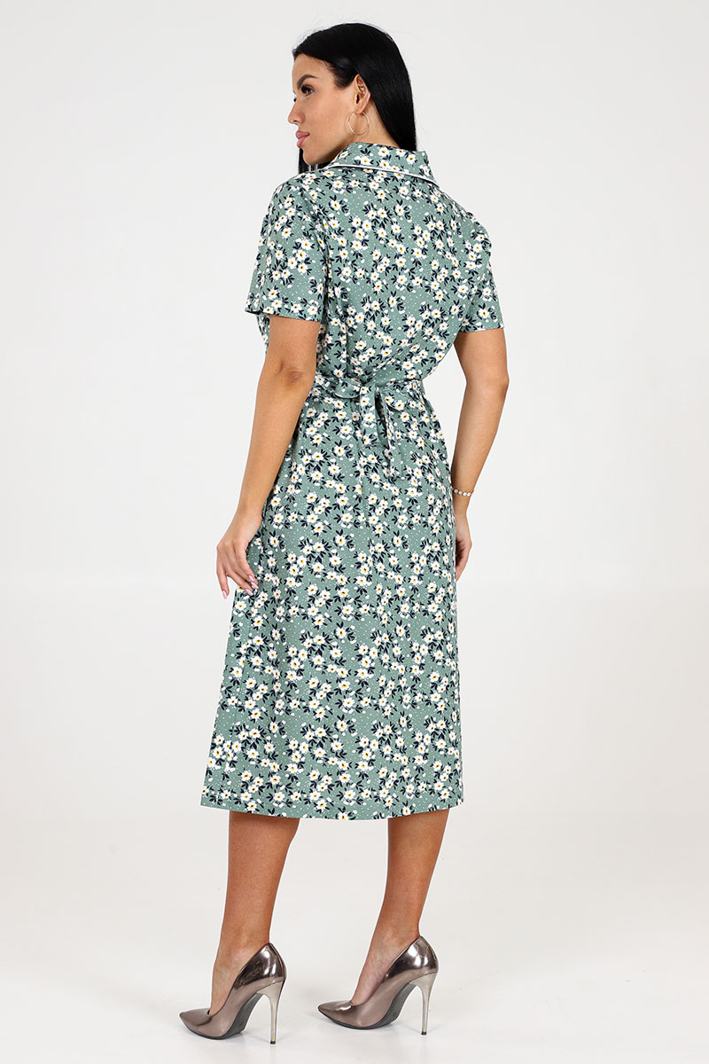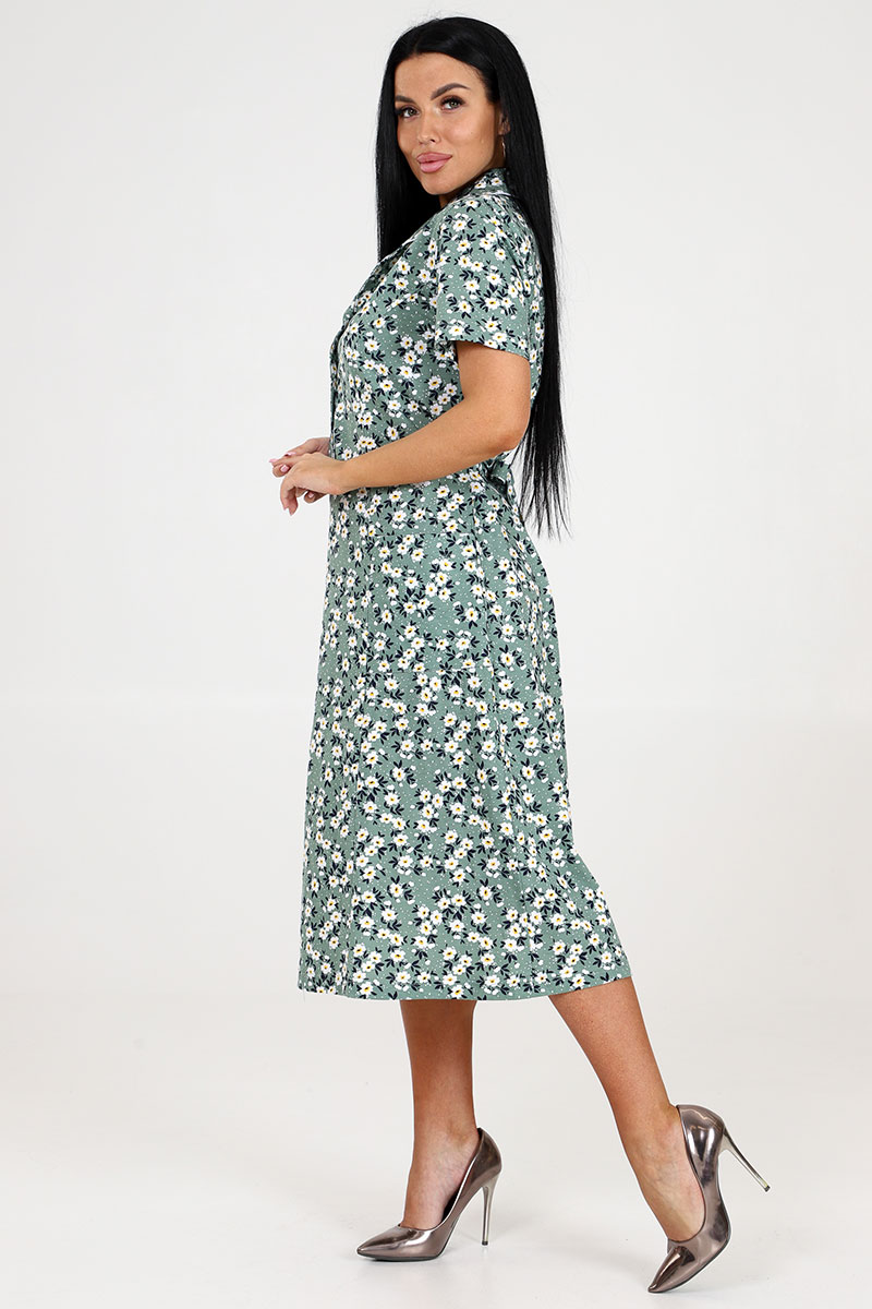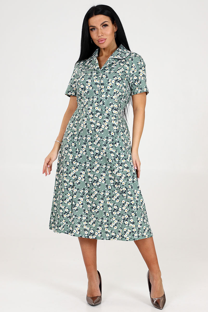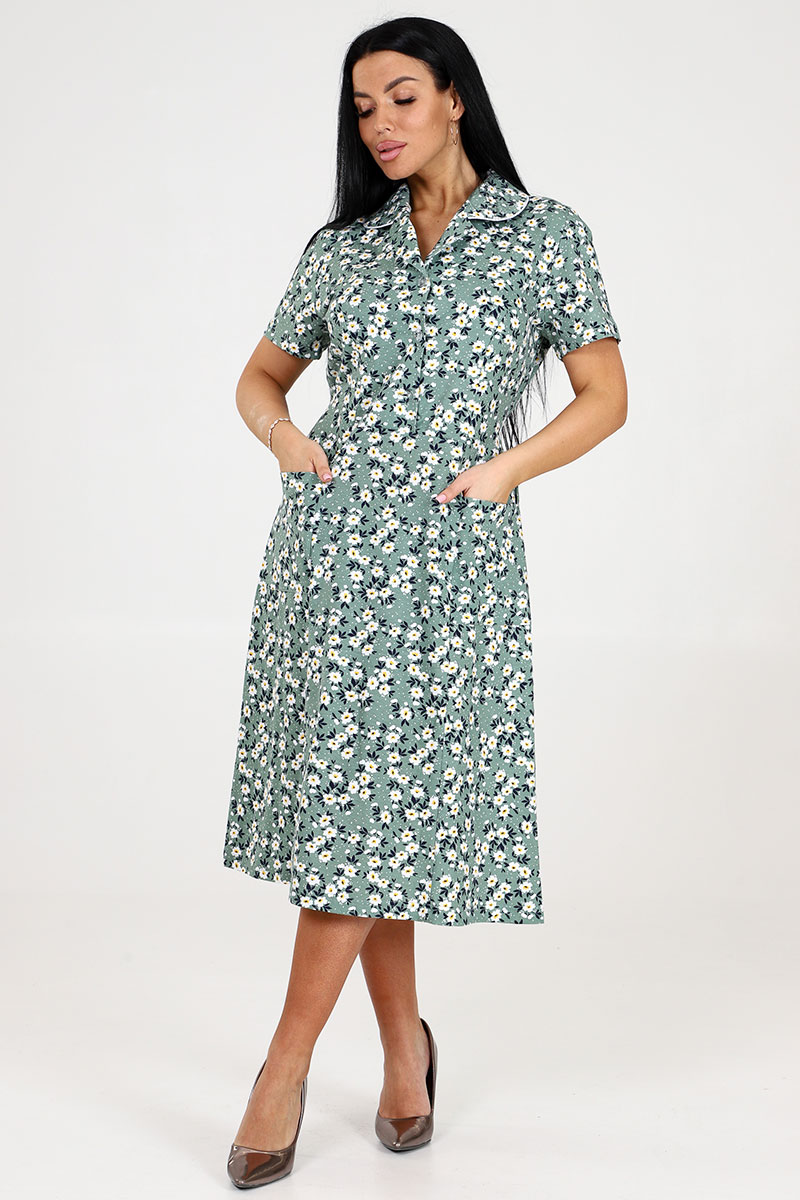 Платье женское "Бабушка" ПлК-241 кулирка (последний размер) белые цветочки на оливковом 56