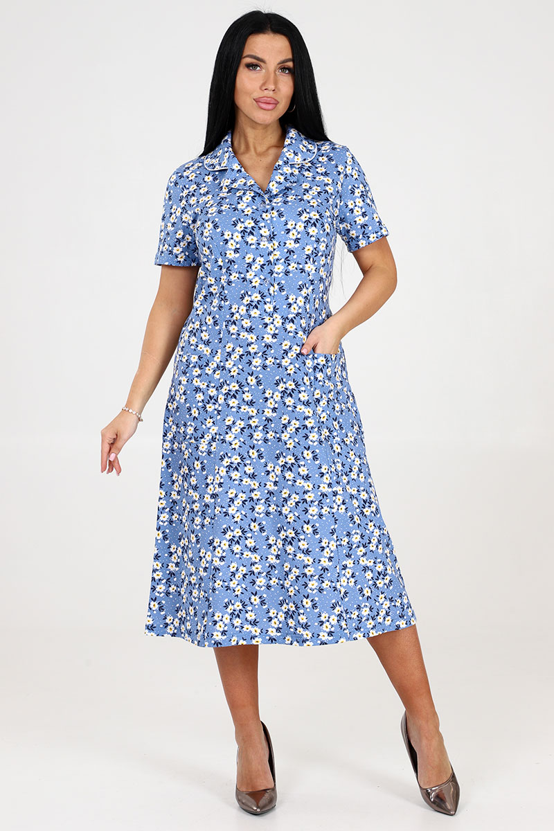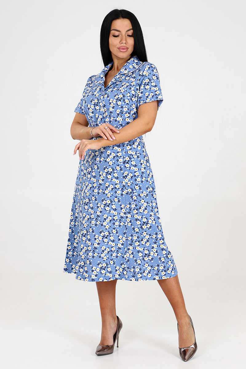 Платье женское "Бабушка" ПлК-241 кулирка (последний размер) белые цветочки на голубом 56