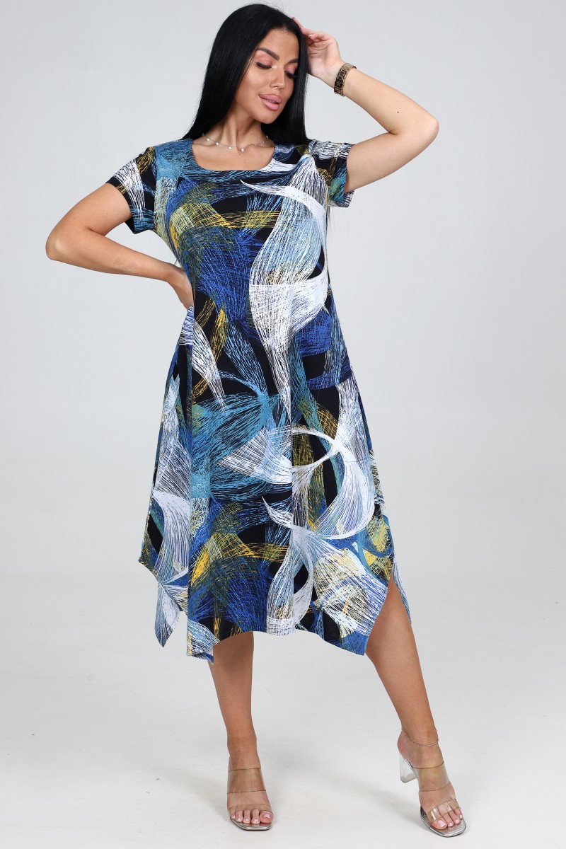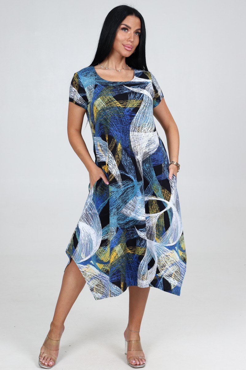 Представляем Вашему вниманию легкое женское платье из кулирки - 100% натурального, дышащего хлопка. Модель имеет интересную расцветку, которая красиво смотрится и поднимает настроение. Изделие хорошо сидит на фигуре и подчеркивает её достоинства. В нём Вы будете чувствовать себя комфортно и уверенно.