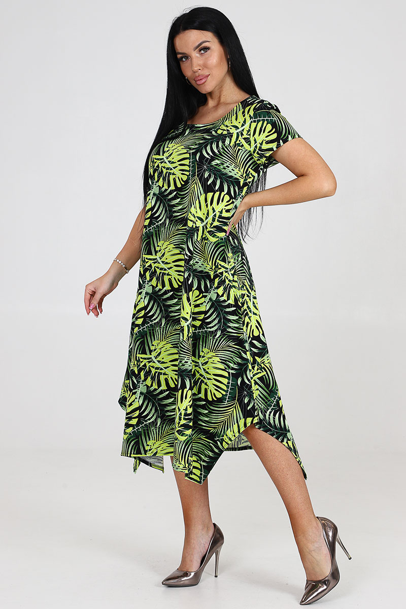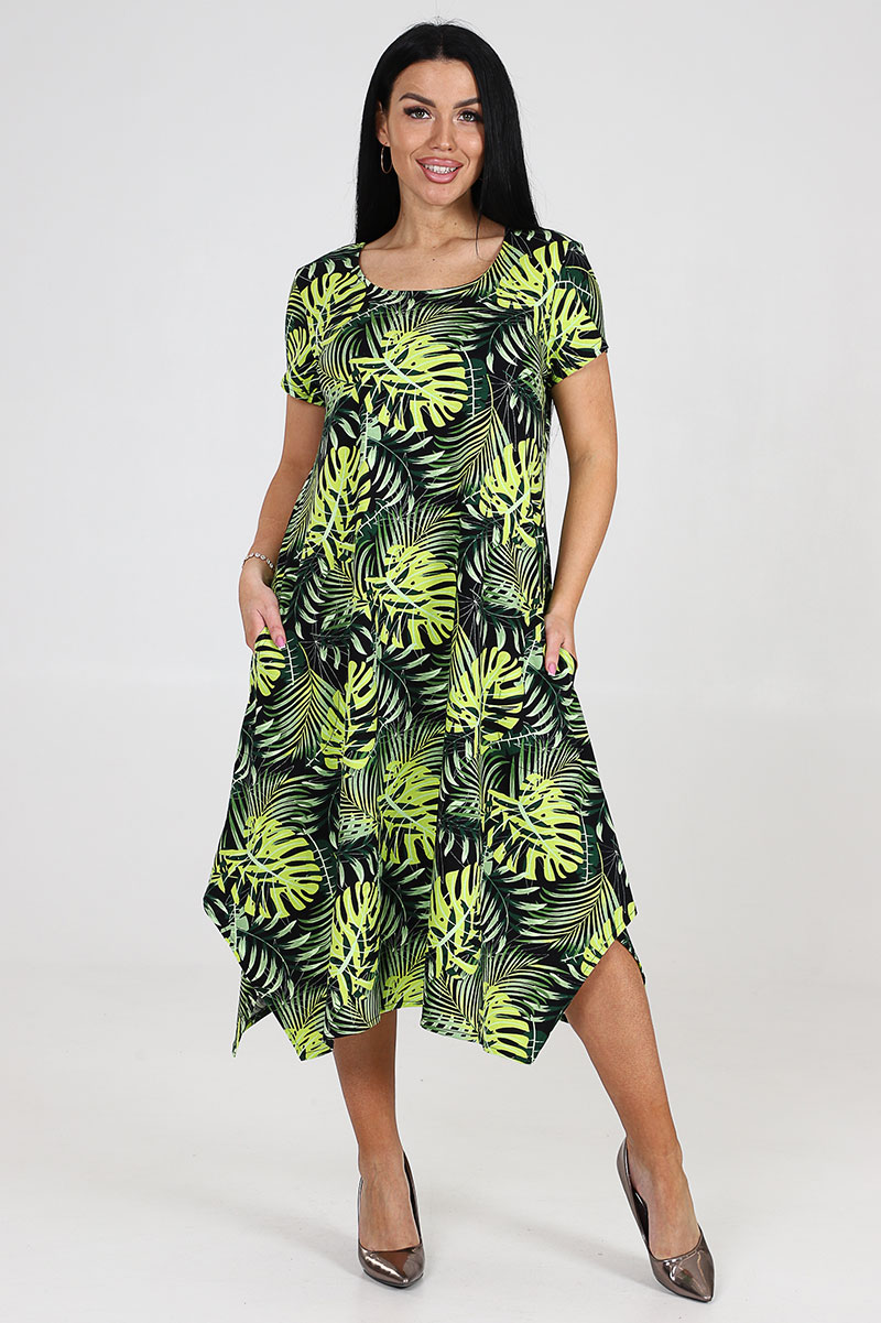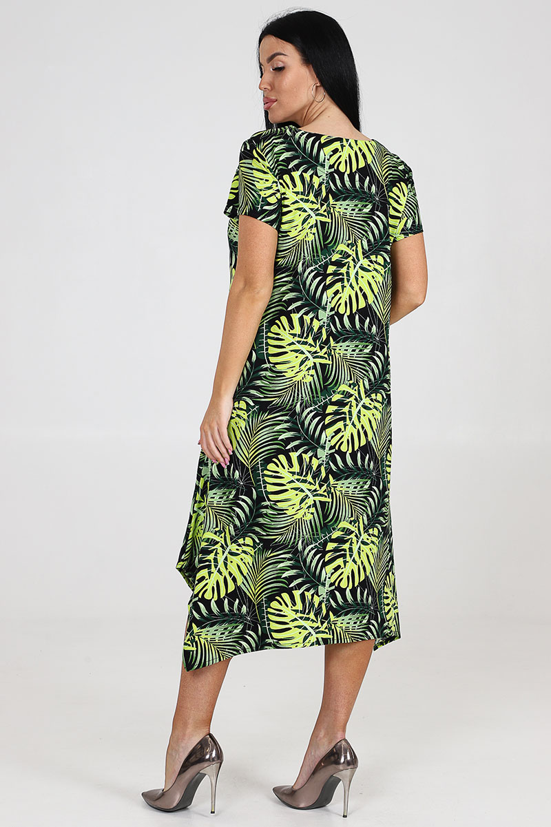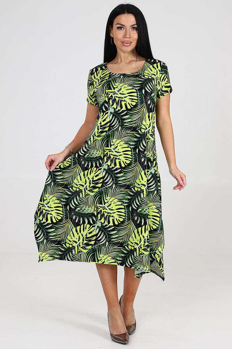 Платье женское "Волна" ПлК-458 кулирка (последний размер) монстера неон 56,60