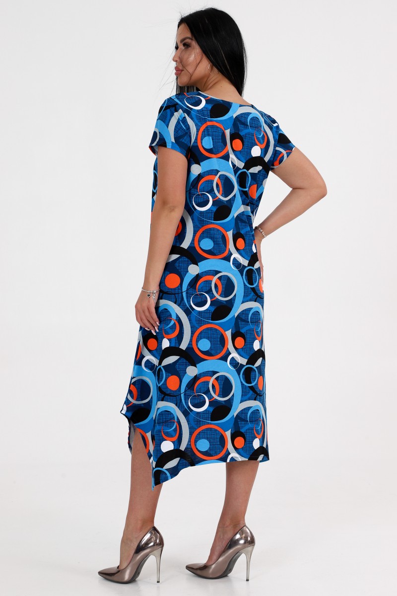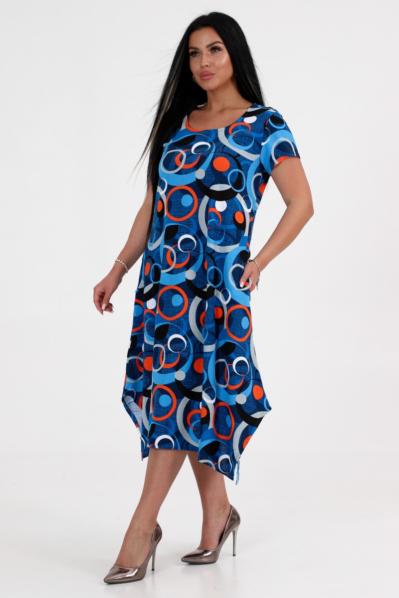 Платье женское "Волна" ПлК-458 кулирка (последний размер) красные круги на синем 52