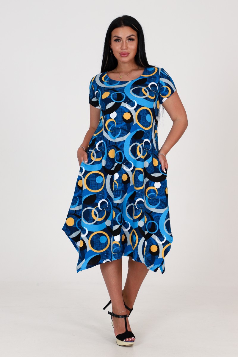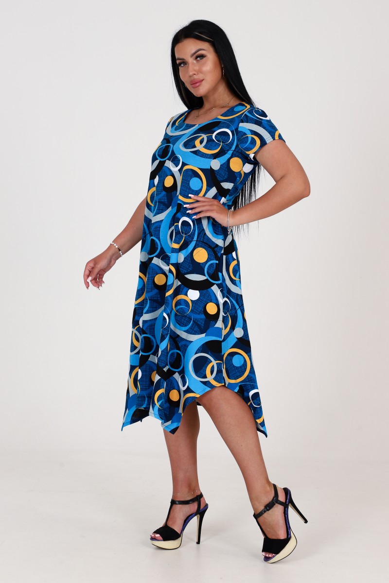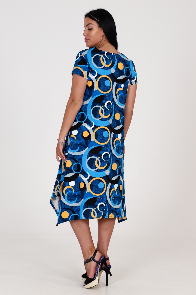 Платье женское "Волна" ПлК-458 кулирка (последний размер) желтые круги на синем 48,54