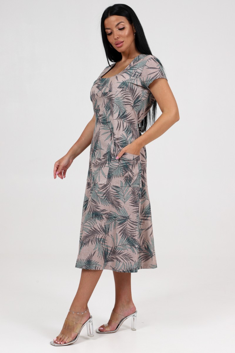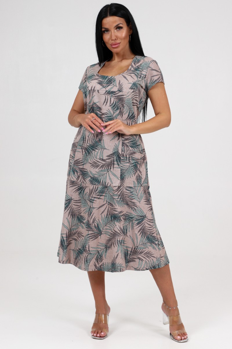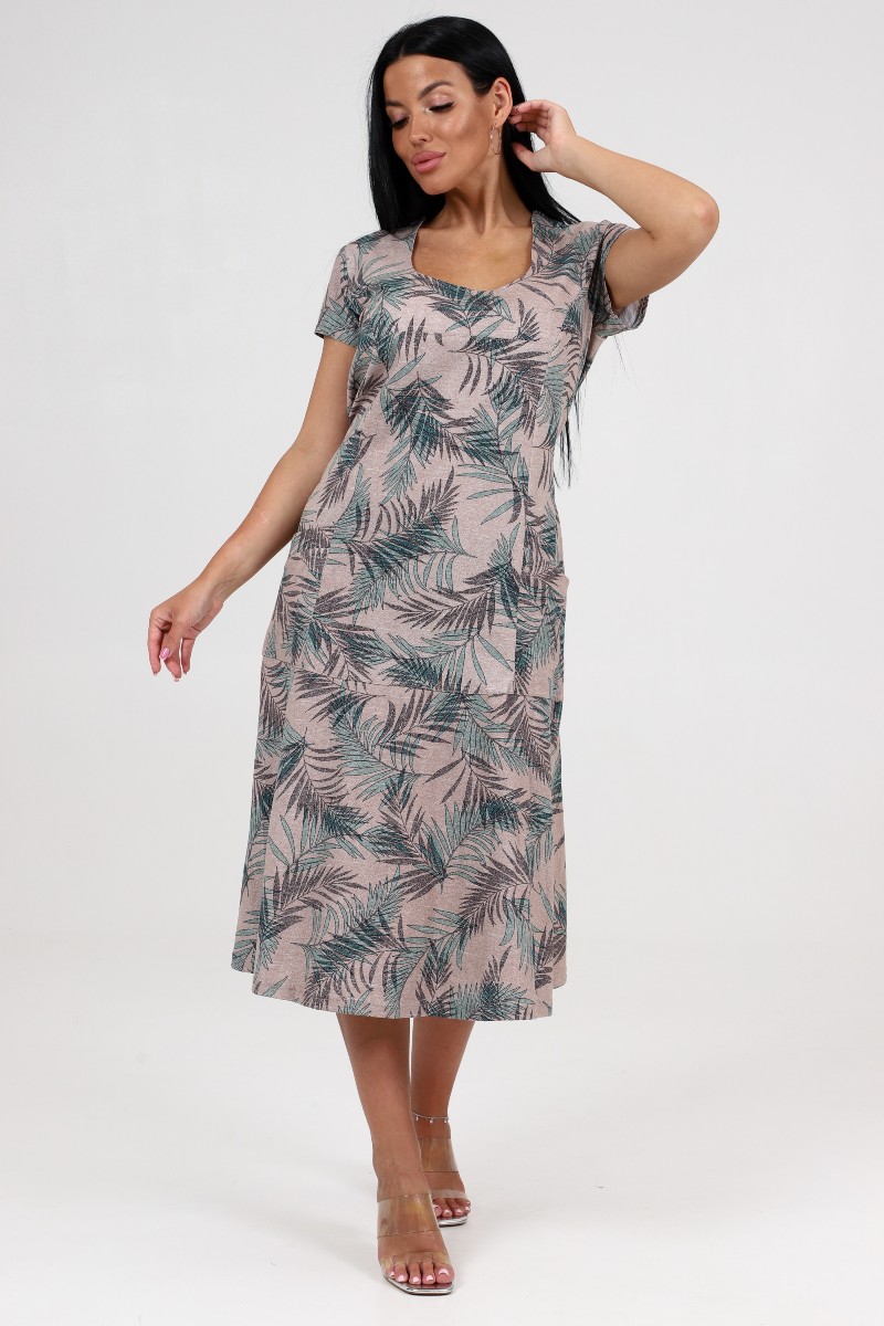 Платье женское "Вера" ПлК-417 кулирка (последний размер) папорот.зел.-кор.на беж. 50,54