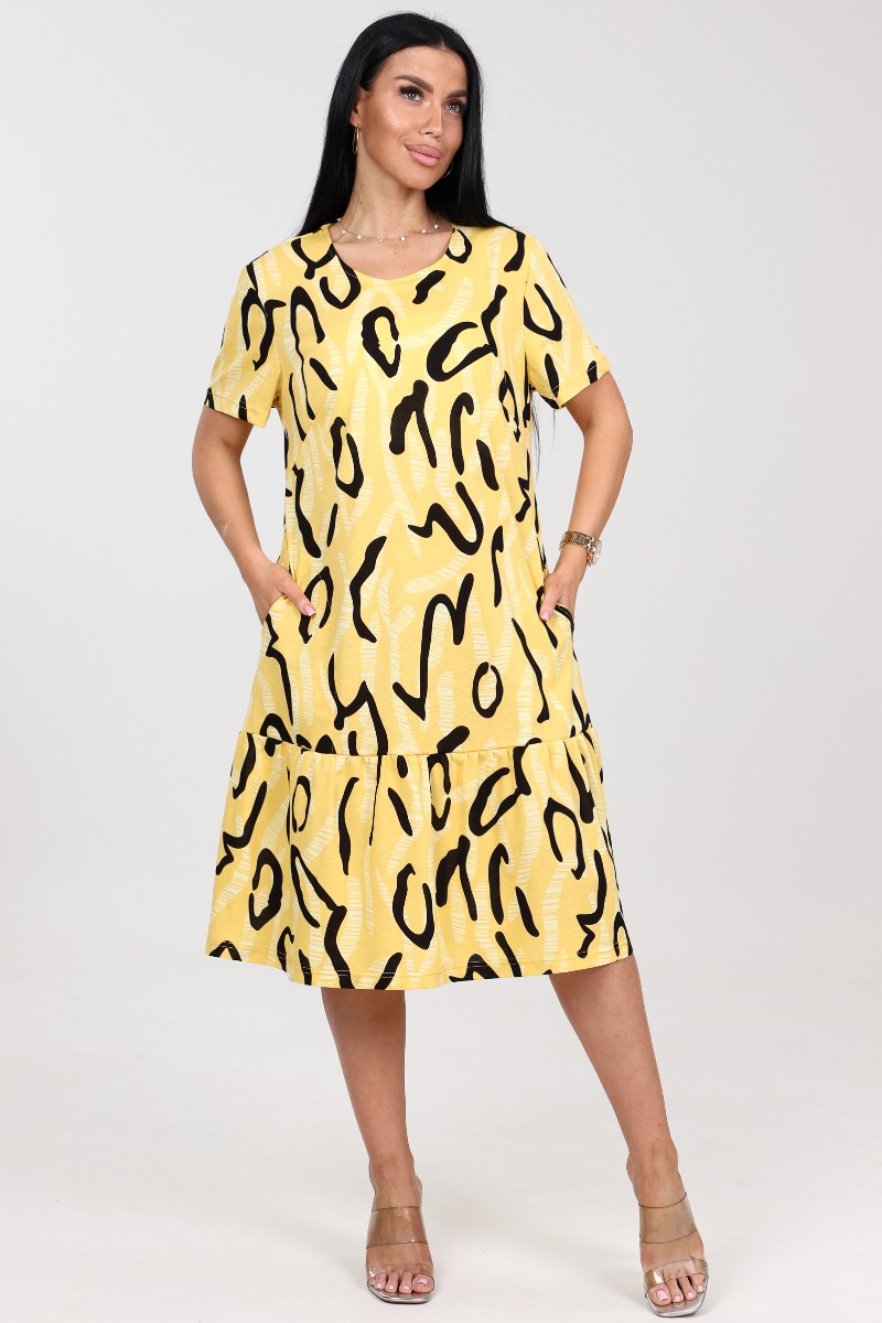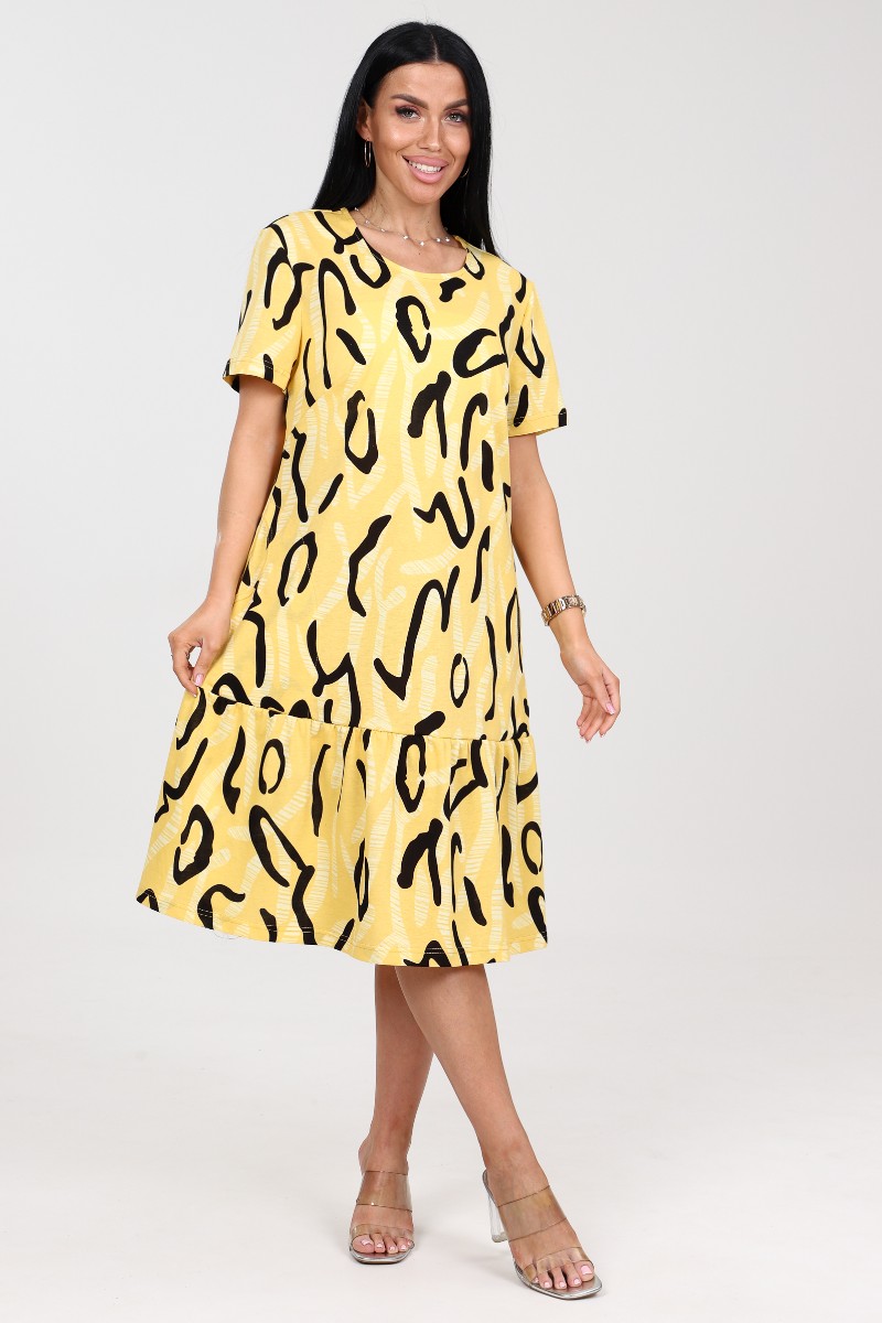 Платье женское "Алёна" ПлК-2582 хлопок (последний размер) загог.на желтом 52