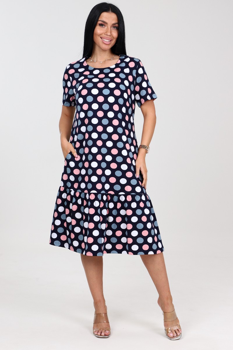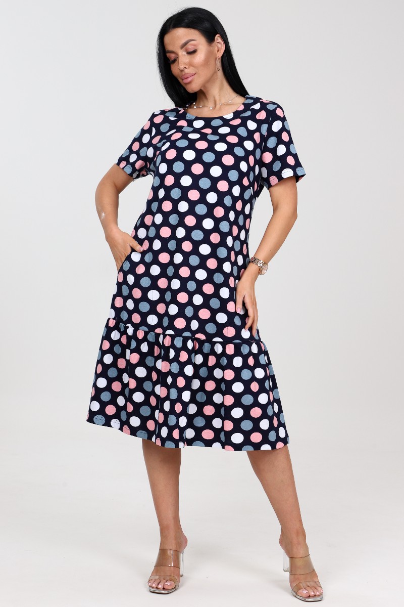 Платье женское "Алёна" ПлК-2582 хлопок (последний размер) горохи серо-роз. 50