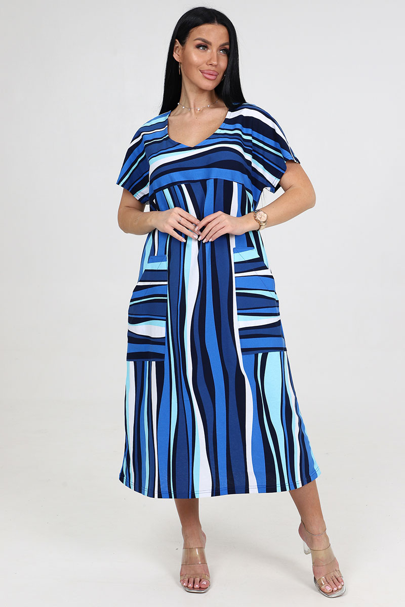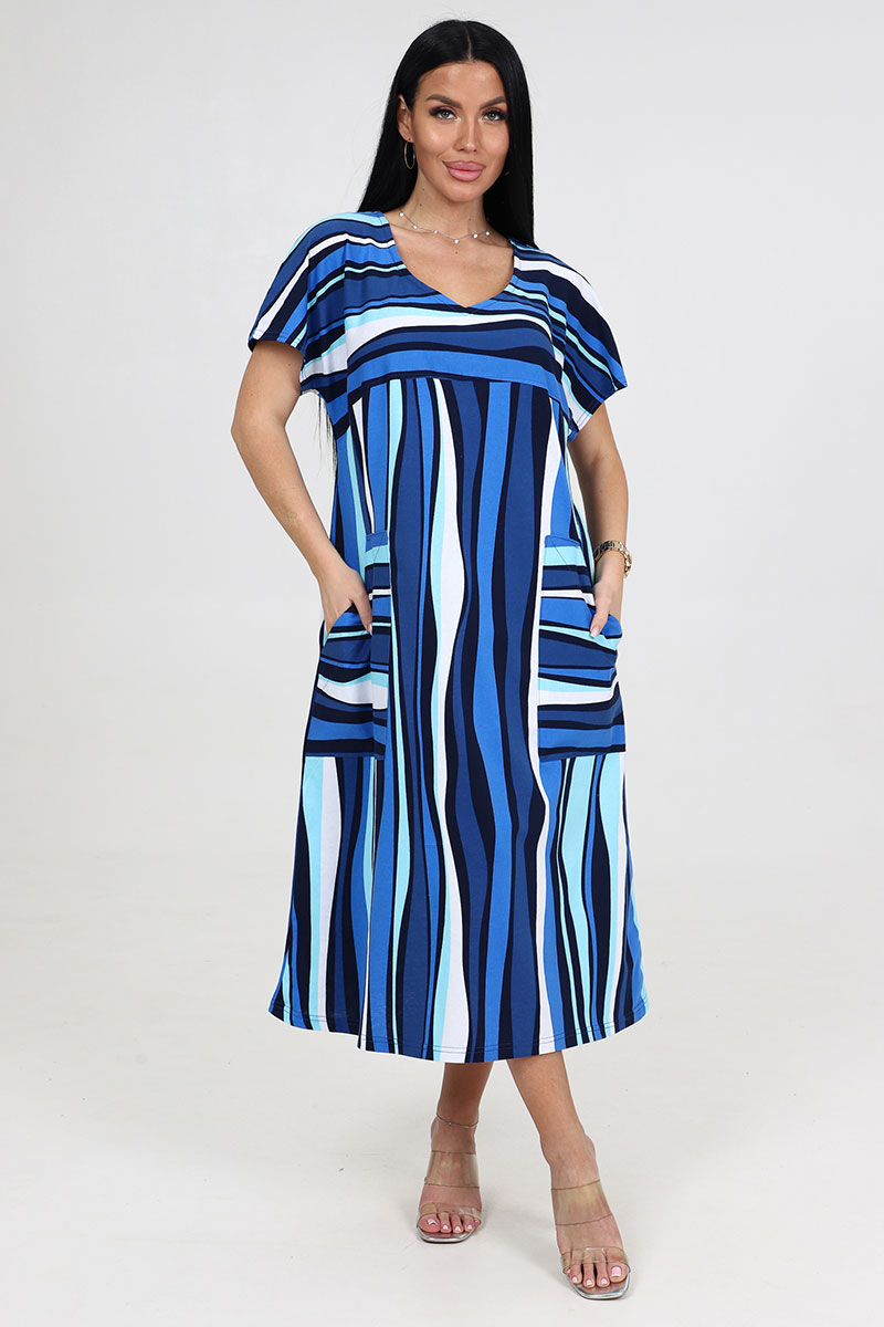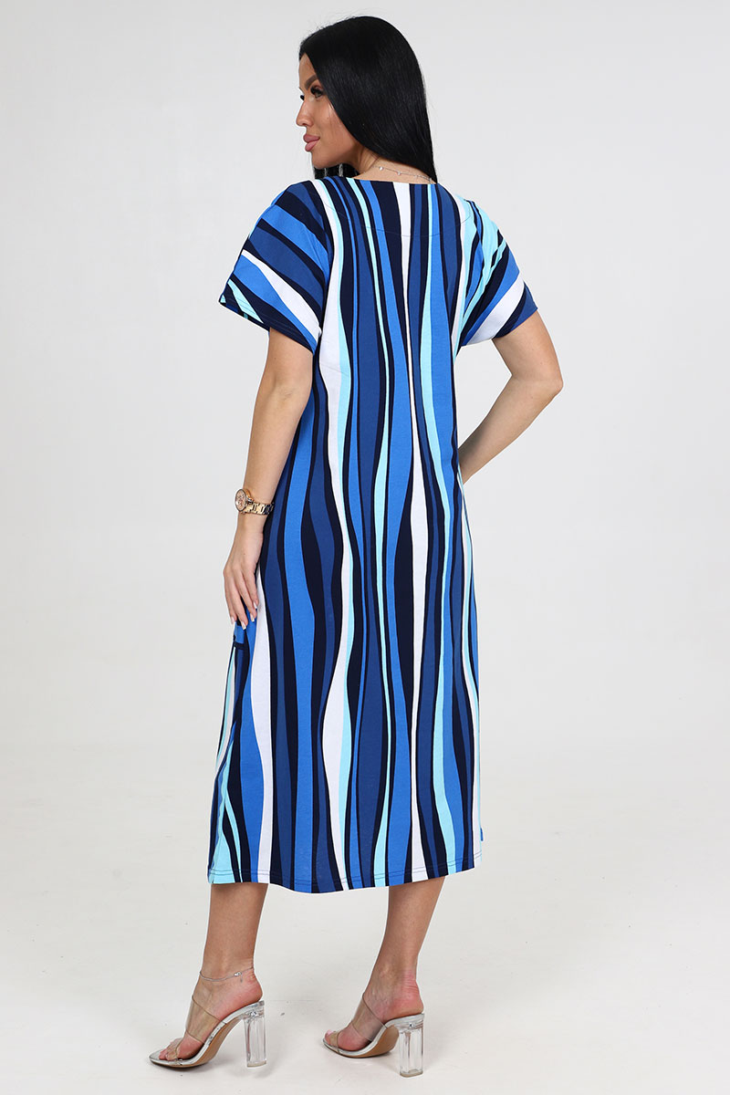 Платье женское "Ассоль-2" ПлК-1509 кулирка (последний размер) полоса волна голубая 48