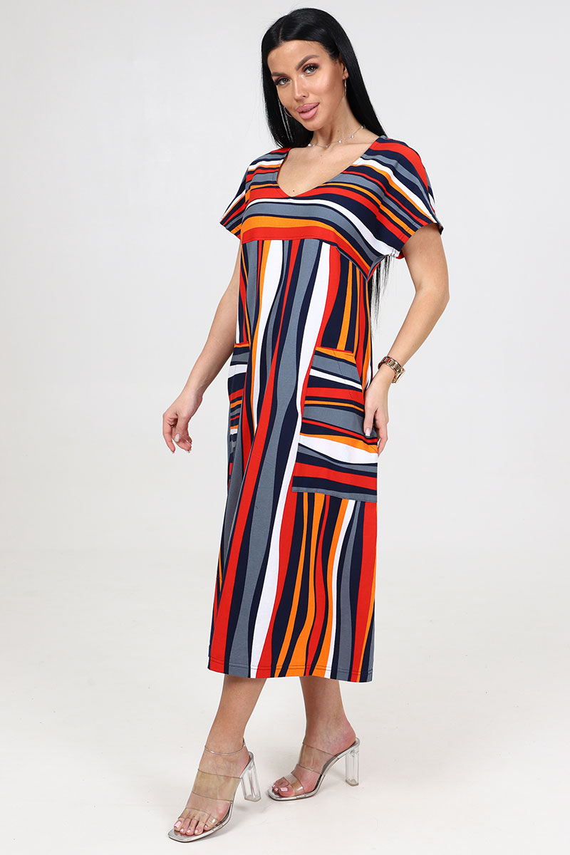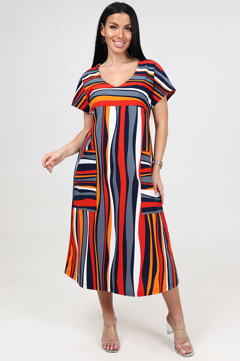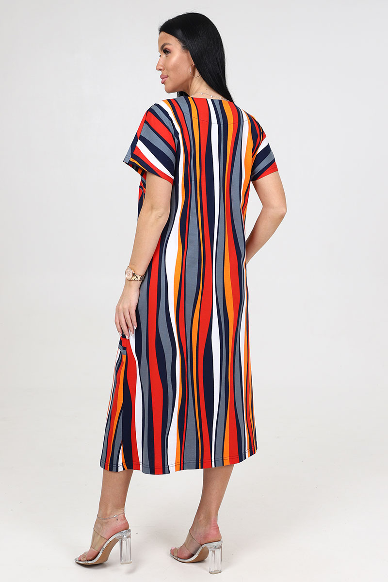 Платье женское "Ассоль-2" ПлК-1509 кулирка (последний размер) полоса волна красная 48