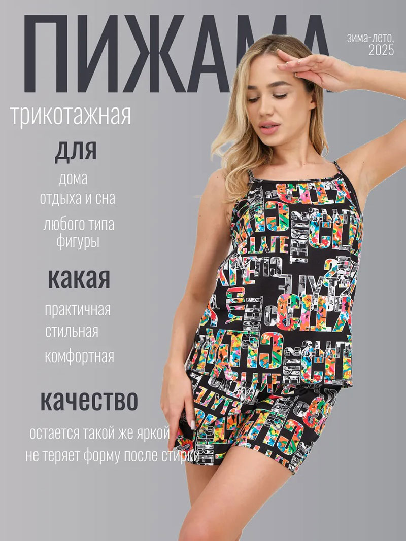 Пижама женская А/005 "Буквы" хлопок (последний размер) разноцветный 52