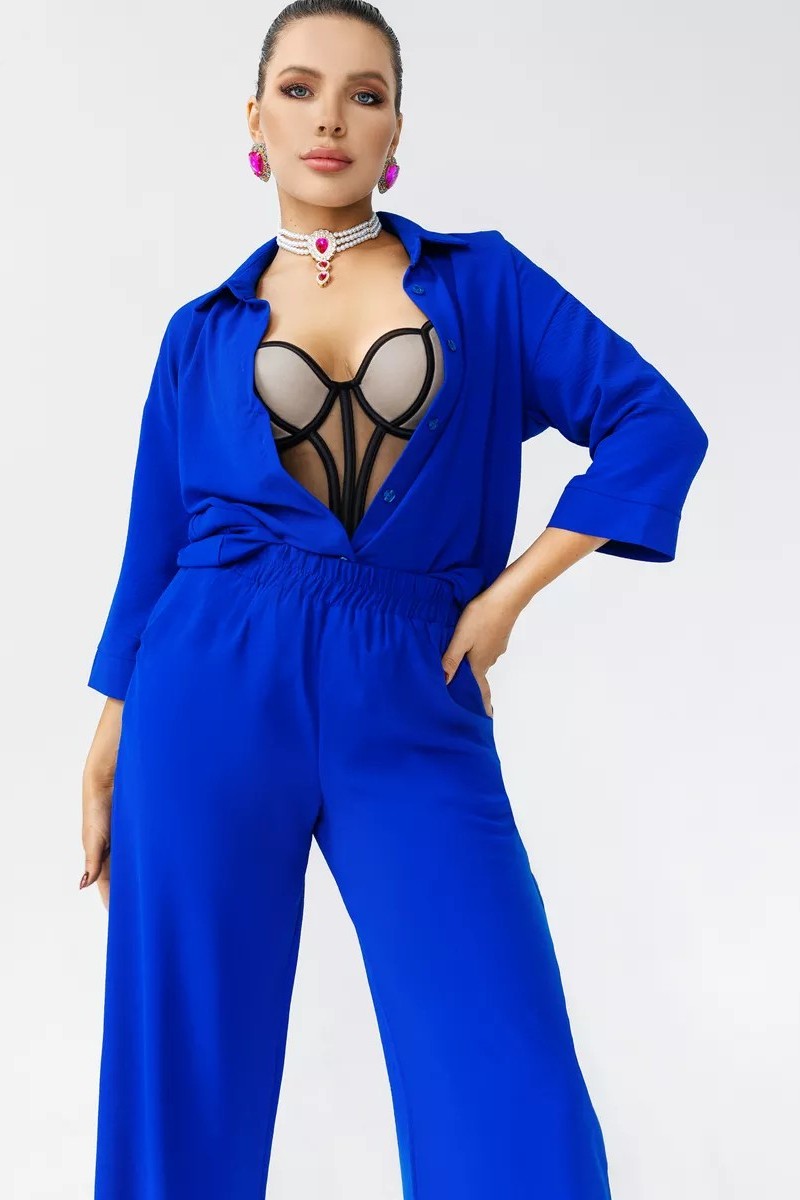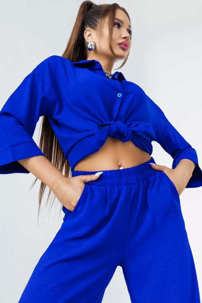 Представляем Вашему вниманию комплект женский 2-х предметный в свободном стиле оверсайз oversize состоит из рубашки блузки с пуговицами и штанов на резинке свободного кроя без подкладки не просвечивает и выполнен из качественного дышащего материала. Легкий и удобный летний костюм женский - рубашка с брюками. Легкая дышащая ткань костюма двойки позволит гулять с комфортом даже в самую жаркую погоду.