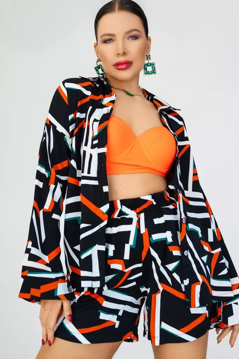 Представляем Вашему вниманию легкий и удобный летний костюм женский - рубашка с шортами. Легкая дышащая ткань костюма двойки позволит гулять с комфортом даже в самую жаркую погоду. Костюм модный классический идеально подойдет не только для прогулок, но и на день рождения на свадьбу, встречу в кафе или для прогулки с друзьями на пляж или море в путешествие или отпуск. Комплект женский 2-х предметный в свободном стиле оверсайз oversize состоит из рубашки блузки с пуговицами и шорт на резинке свободного кроя без подкладки не просвечивает и выполнен из качественного дышащего материала. Женская рубашка и шорты имеют прямой свободный крой. Идеально подходят на высоких и не высоких девушек для беременных и кормящих. Рубашку можно завязывать узлом. Так же костюм идеален для дома как пижама он домашний уютный.