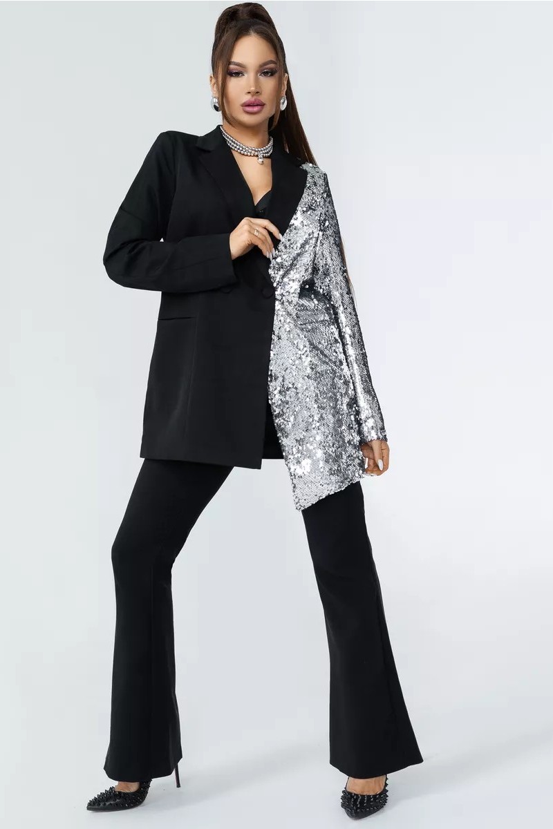Пиджак женский КР-011ТР туран (последний размер) черный-серебряный 44