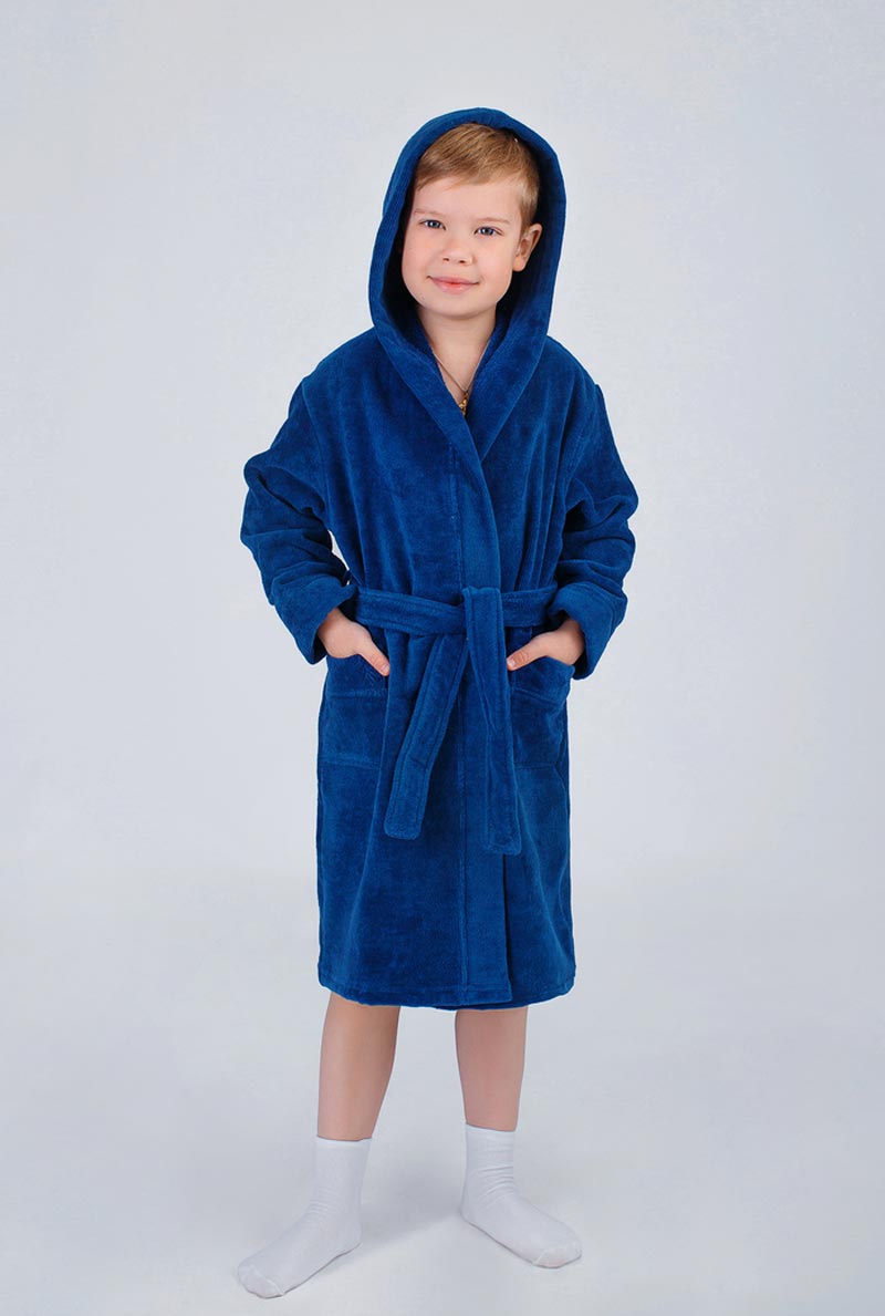 Халат детский велюровый "Непоседы" для мальчика (последний размер) синий 38