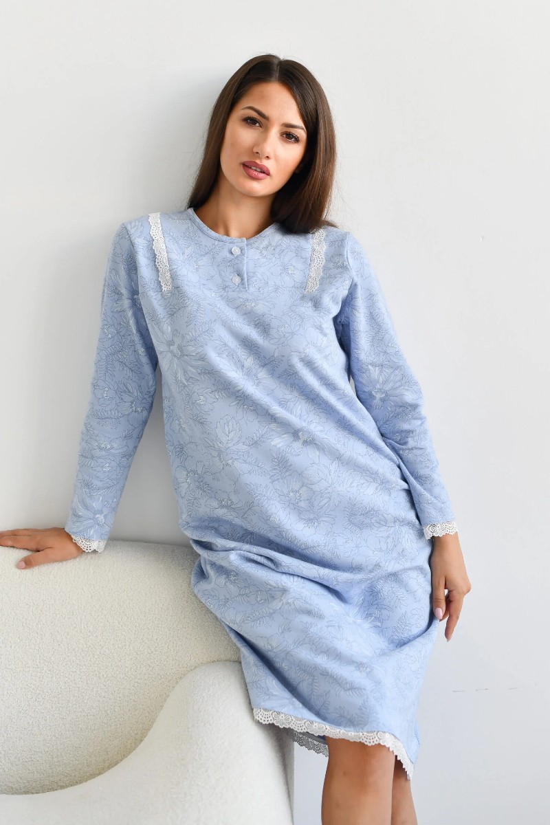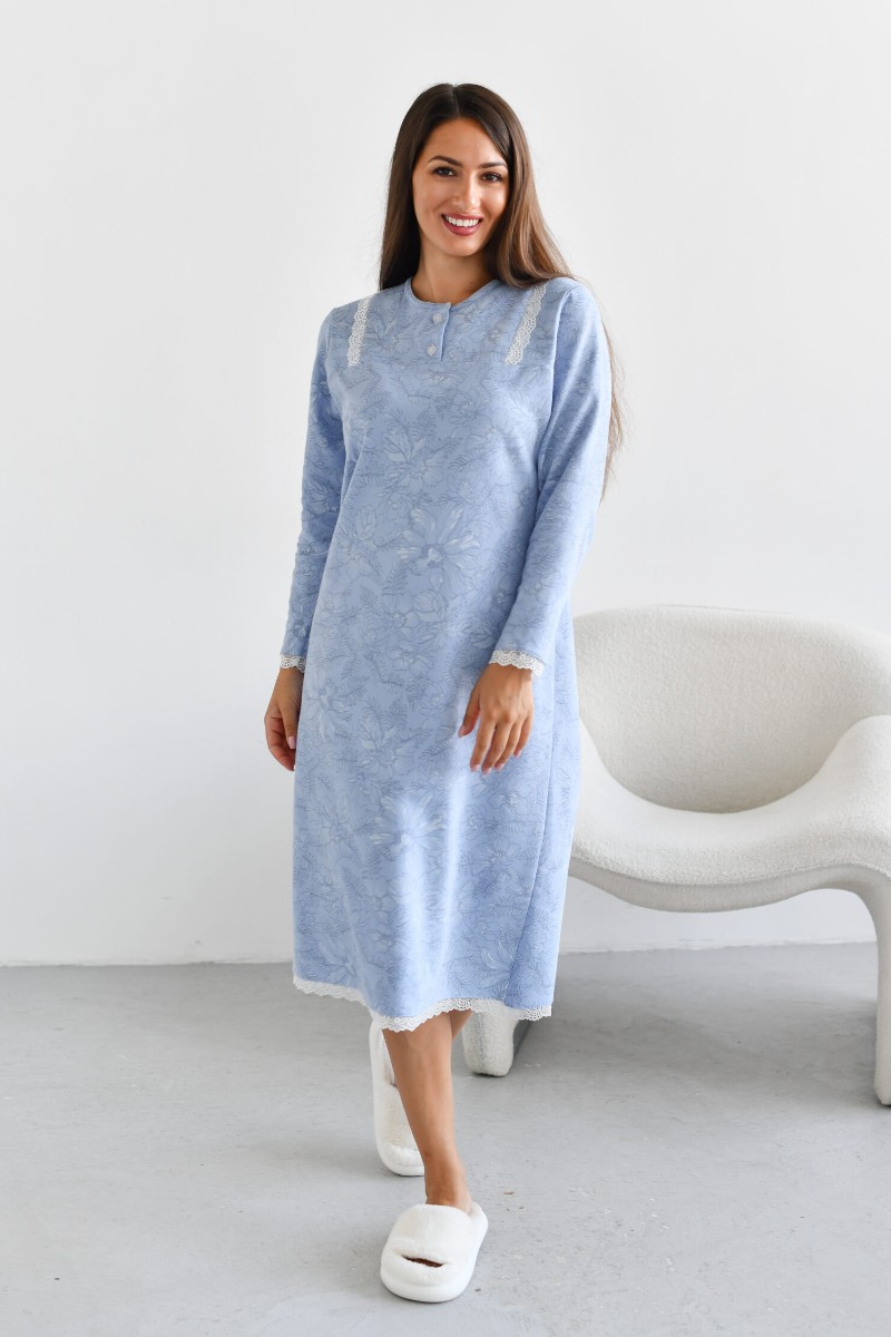 Сорочка женская "Нина" М-74Н футер с начесом (р-ры: 44-62) голубой