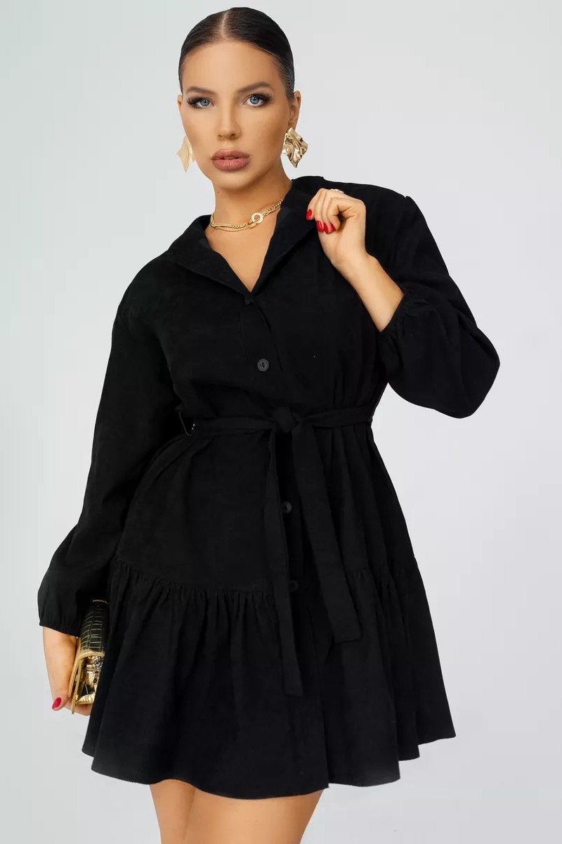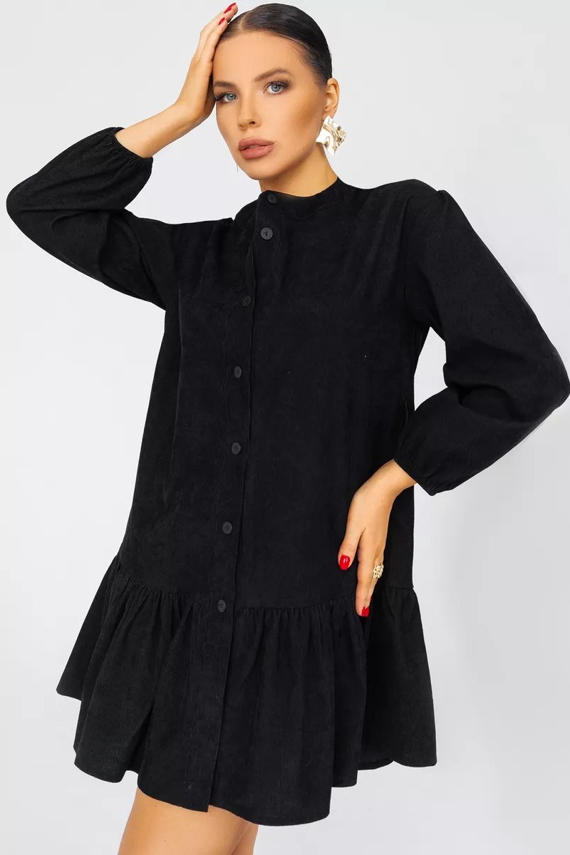 Представляем Вашему вниманию маленькое элегантное платье женское – незаменимый и модный элемент современного гардероба девушки. В коктейльном наряде можно прогуляться по городу весенним и летним вечером, отправиться на свидание. Вечернее праздничное платье подойдет и для неофициальных встреч, на свидание, крестины, праздник, торжество. Уверяем, на особом мероприятии, и на клубной вечеринке вы будете выглядеть сногсшибательно. Легкая, но плотная ткань вельвет не просвечивает и приятна на ощупь. Ярусное платье в длине мини или миди по колено, в зависимости от роста, подойдет как для высоких, так и для невысоких девушек, женщин, девочек. Модное платье свободного силуэта с мягким поясом, который при подвязке создает изысканный, приталенный силуэт по фигуре. За счет строгого верха рубашки, оно станет хорошим выбором для работы в офис, на учебу в школу. Комбинируется с любой одеждой и обувью на весну и лето. Короткое платье подчеркнет стройные ноги, а v-образный вырез на пуговицах акцентирует внимание на груди. Сделает ваш образ сексуальным и женственным. Объемные рукава на манжетах выделяют линию плеча и красивые кисти рук. За счет свободного кроя, изделие хорошо садится на любую, даже полную, фигуру и прекрасно смотрится для больших размеров. Создавайте с помощью оригинальных аксессуаров разные повседневные и нарядные луки. Не упустите возможность добавить шикарное мини-платье в свою коллекцию весной.