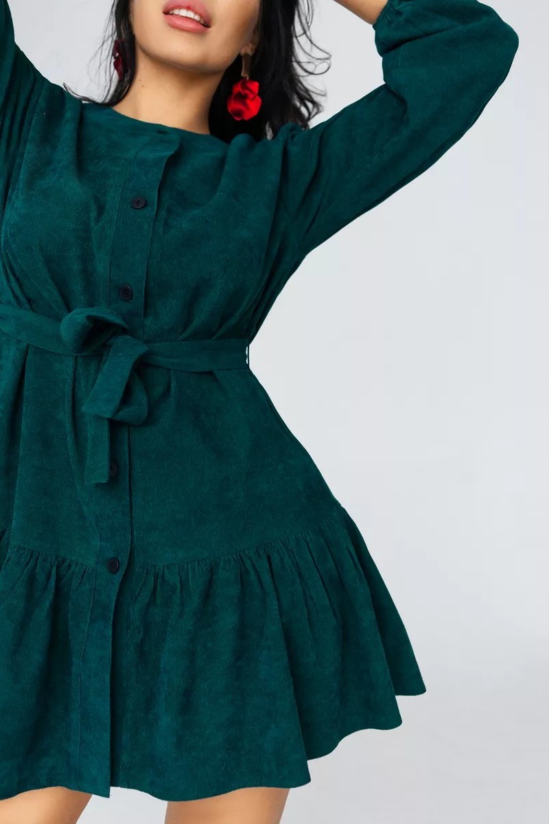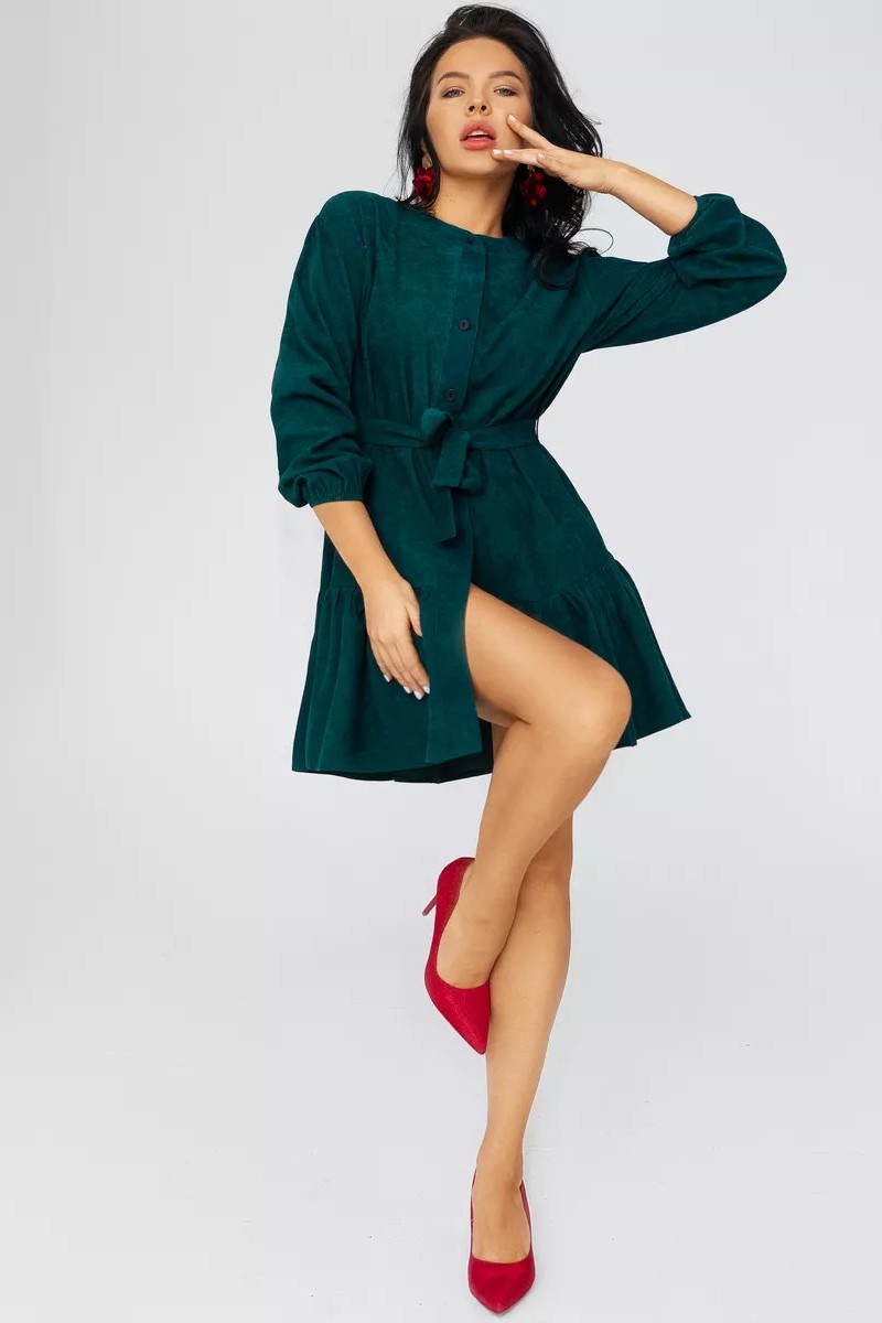 Представляем Вашему вниманию маленькое элегантное платье женское – незаменимый и модный элемент современного гардероба девушки. В коктейльном наряде можно прогуляться по городу весенним и летним вечером, отправиться на свидание. Вечернее праздничное платье подойдет и для неофициальных встреч, на свидание, крестины, праздник, торжество. Уверяем, на особом мероприятии, и на клубной вечеринке вы будете выглядеть сногсшибательно. Легкая, но плотная ткань вельвет не просвечивает и приятна на ощупь. Ярусное платье в длине мини или миди по колено, в зависимости от роста, подойдет как для высоких, так и для невысоких девушек, женщин, девочек. Модное платье свободного силуэта с мягким поясом, который при подвязке создает изысканный, приталенный силуэт по фигуре. За счет строгого верха рубашки, оно станет хорошим выбором для работы в офис, на учебу в школу. Комбинируется с любой одеждой и обувью на весну и лето. Короткое платье подчеркнет стройные ноги, а v-образный вырез на пуговицах акцентирует внимание на груди. Сделает ваш образ сексуальным и женственным. Объемные рукава на манжетах выделяют линию плеча и красивые кисти рук. За счет свободного кроя, изделие хорошо садится на любую, даже полную, фигуру и прекрасно смотрится для больших размеров. Создавайте с помощью оригинальных аксессуаров разные повседневные и нарядные луки. Не упустите возможность добавить шикарное мини-платье в свою коллекцию весной.