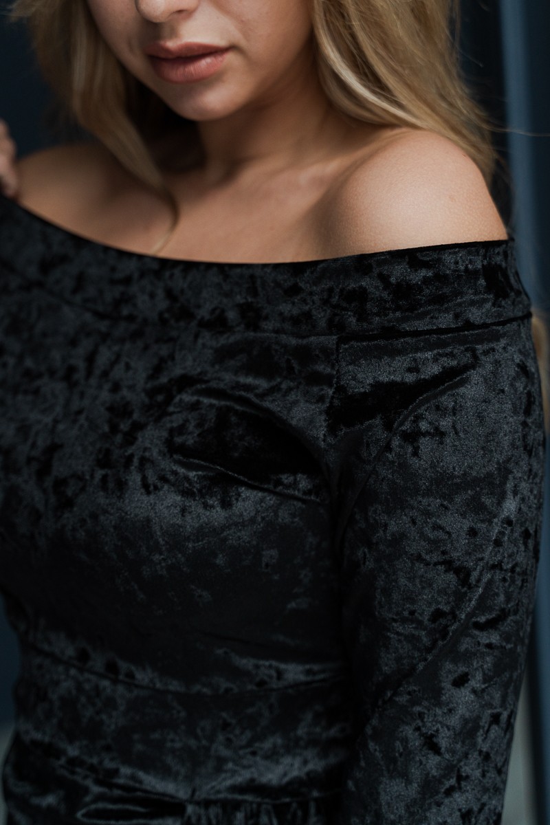 Представляем Вашему вниманию элегантное, праздничное бархатное платье с рукавом 3/4 и изящным вырезом. Платье можно носить с чуть спущенными плечиками. Выполнено из эластичного и мягкого мраморного бархата.