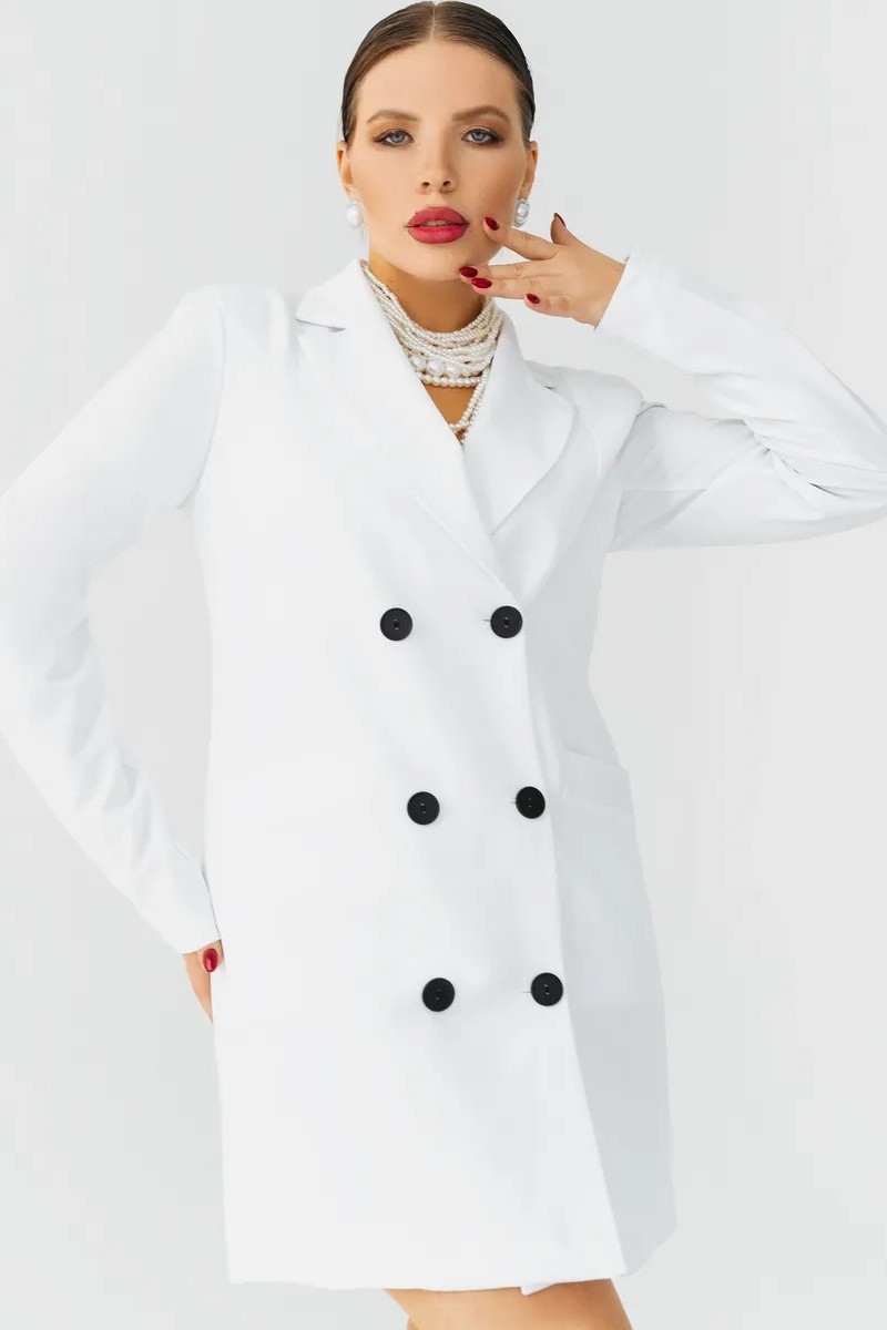 Представляем Вашему вниманию уникальное платье пиджак, идеальный выбор для особых событий и праздников. Это женское платье отличается не только своим стильным дизайном, но и удобством носки осенью и зимой. Оно идеально подойдет для офиса, будучи нарядным и в то же время элегантным.
