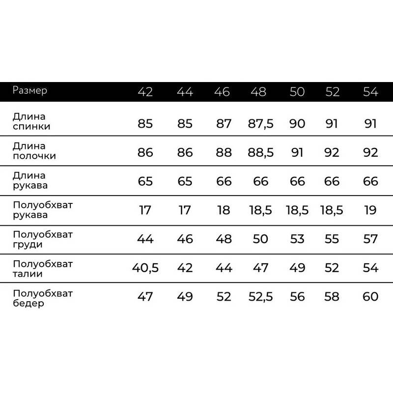 | Размер | Обхват груди, см | Обхват талии, см | Обхват бедер, см | Рост, см |