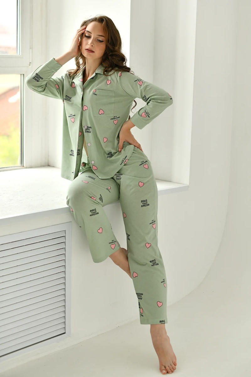 Пижама женская "Волшебство" 2130-К кулирка (последний размер) зеленый 48