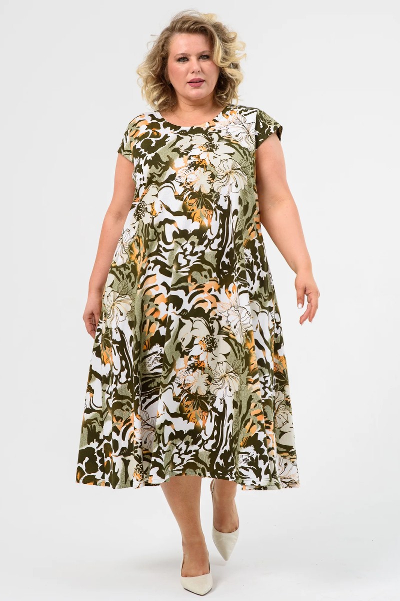 Платье женское 1679-К "Розовое лето" кулирка (последний размер) хаки 64,70
